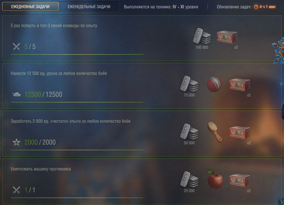 _IDI_SYDA_ Опубликовано: 6 января Игроки 4 653 публикации 135 077 боёв Жалоба Поделиться Опубликовано: 6 января 06 янв 2026 - 23:18 пользователь Avmestan сказал:Скиньте пожалуйста список задач от деда мороза на сегодня!!!И еженедельные уже обновились или ещё нет?Сбрасывать настройки и седеть потом час всё восстанавливать не хочется)https://forum-mt-prod.lesta.ru/monthly_01_2026/post-2043189-0-14019900-1767729605_thumb.pnghttps://forum-mt-prod.lesta.ru/monthly_01_2026/post-2043189-0-74536600-1767729613_thumb.pngНо это старые. До обновления еще 4 часа. Ссылка на комментарий Поделиться на других сайтах Другие способы поделиться...