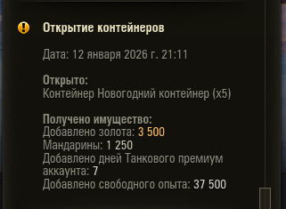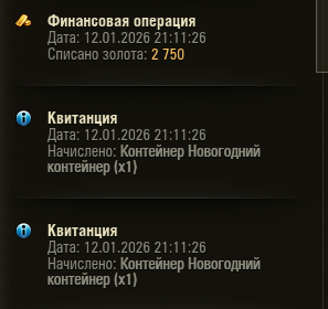 Yus_Elder Опубликовано: 12 января Игроки 6 781 публикация 150 756 боёв Жалоба Поделиться Опубликовано: 12 января (изменено) 12 янв 2026 - 20:13 пользователь intel27rus сказал:5 Гарантов подряд,это точно леста ваш новый год.6 полюбому тоже будет гарант.О!А я думал я один такой "фартовый"После пятого покупать ничего за голду не буду, смысла нет. Может повезёт хоть немного и к БП получится голды 2500 оставить. Есть мнение что в улучшенных что-то интересное будет Изменено 12 января пользователем Yus_Elder Канал такового задротаЗначит всё-таки дело в Охоте Ссылка на комментарий Поделиться на других сайтах Другие способы поделиться...