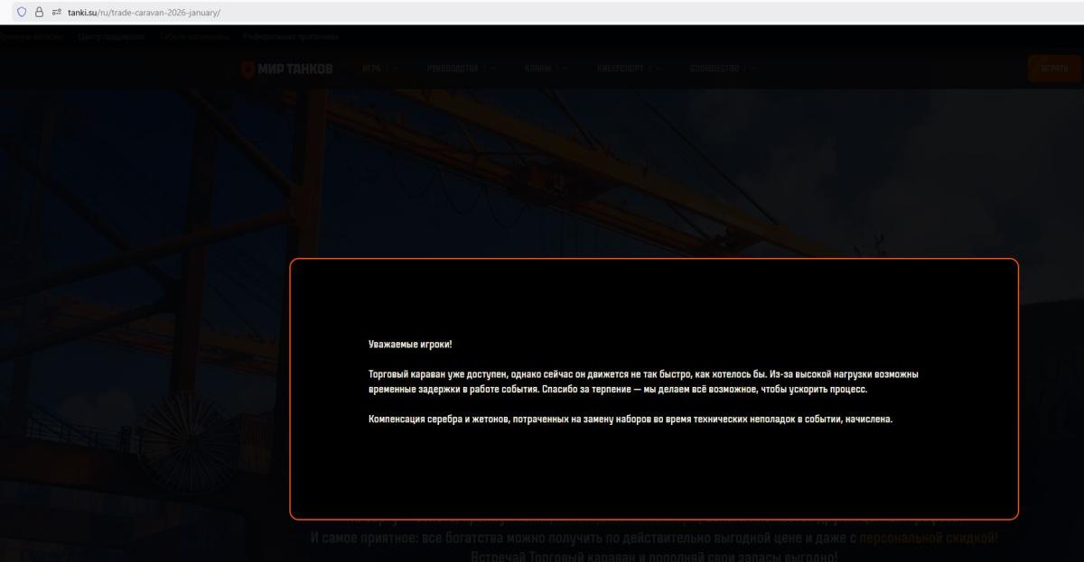 ognevikov_16r Опубликовано: 10 января Игроки 30 публикаций 6 003 боя Жалоба Поделиться Опубликовано: 10 января 10 янв 2026 - 20:33 пользователь alt_5 сказал:Этот звиздеж на официальном сайте:https://forum-mt-prod.lesta.ru/monthly_01_2026/post-8225909-0-18756400-1768066372_thumb.jpg https://tanki.su/ru/trade-caravan-2026-january/так я и говорю, от лесты. На заменах 8 числа списали 10+ лишних, ни одного не вернули. Ссылка на комментарий Поделиться на других сайтах Другие способы поделиться...