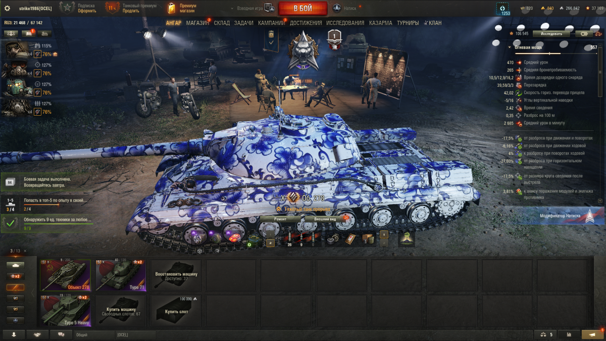 strike1986 Опубликовано: 14 марта Игроки 6 339 публикаций 6 952 боя Поделиться Опубликовано: 14 марта показываю топовую сборку для натиска, другой невозможноза каждый модуль можно прояснить. стаба понятно - у него она занерфлена чтобы все ставили вентиль. у барабанных + 1 слот, но этот слот зарезервирован. ставил т3 огнем - не то. на ис5 магически действует, тут только стаб. т3 заходит если одновременно и плохая стаба и плохая сводка. ис5 и может кировец-к2. у 278 сводка не плохаявентиль - тут важно, что он с 0,35 делает 0,33 точность. в этой игре это важно, 0,35 шалтай болтай. по сути не можешь стрелять точно кроме как в упоре. 0,34 оптимальная точность, 0,33 повышенаят3 закалка - критуется и горит очень сильно, пришлось снять с ис3м3 т3 закалку, хотя есть уже закалка ставить умп + стаб - тоже не понравилось без вентиля, точность 0,35. т3 огнем + стаба - тоже пробовал и нет. т3 турбина - нет.крч кто хочет может тоже перебрать и даже нужно это сделать.суть напоминания что надо все же ставить т3 закалку в натиске, а в рандоме лучше не играть на 278 хотя может он и для натиска не особо. пока 40% на прикатке . лагает натиск частом60 и тайп71 50б фош б - вообще не хуже в натиске и в этом тоже будутемкость барабана у 278 примерно как у вилки50б там пишут брони нет, но он тоже подтанковывает корпусом и главное он изначально точный и стабилизированый, у него больше хп и увн, барабан на 1600под абилкой он кладет прекрасно. 50б на этом акке нет, но он или лучше или такой же в натиске. ричночиронте тоже самое - он такой же как 278, только больше к 40кмч тяготеет всегда прав Ссылка на комментарий Поделиться на других сайтах Другие способы поделиться...