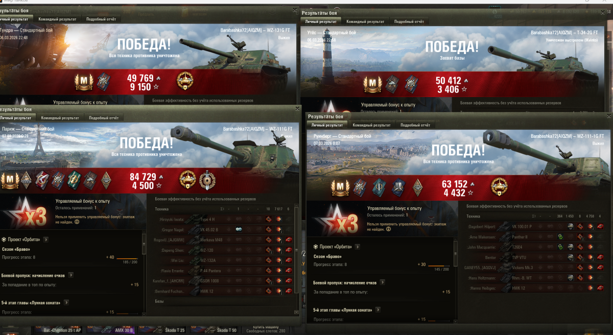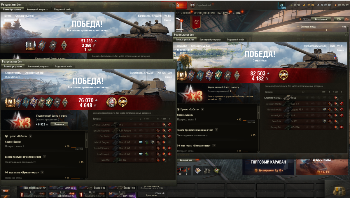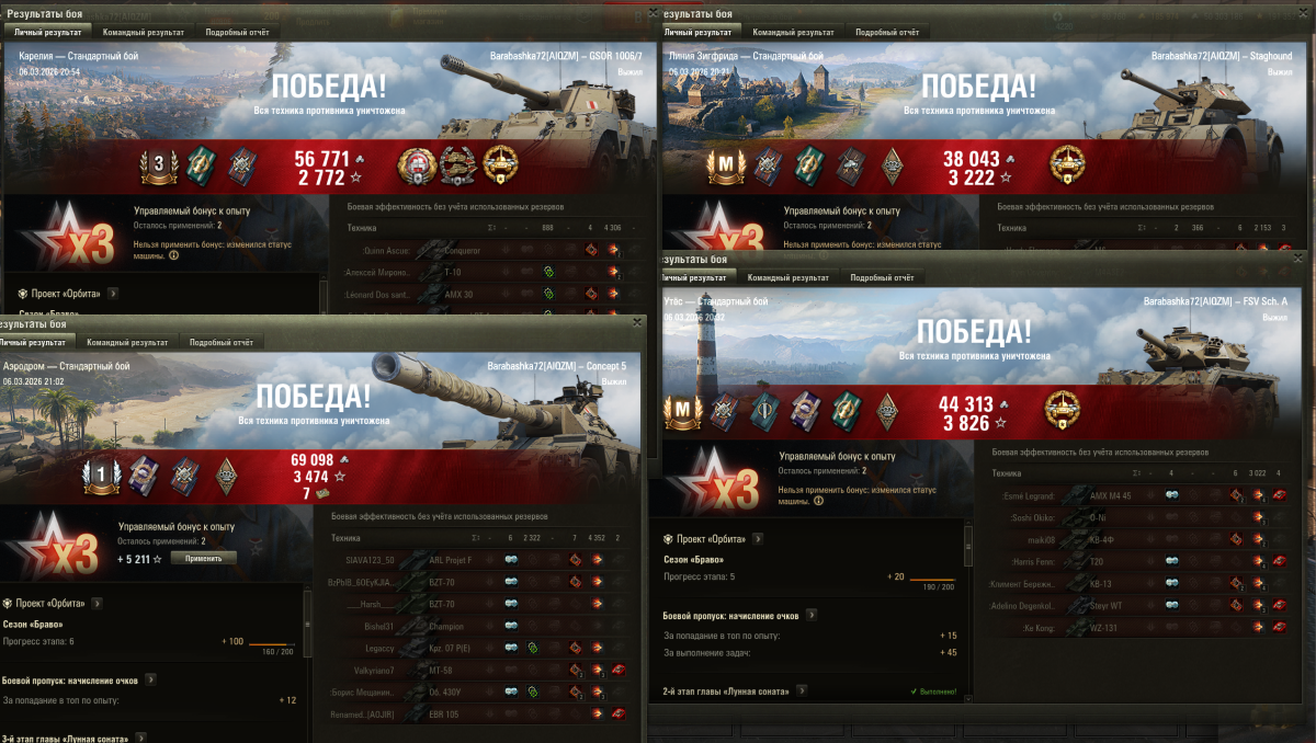 Barabashka72 Опубликовано: 6 марта Игроки 14 139 публикаций 68 049 боёв Жалоба Поделиться Опубликовано: 6 марта (изменено) 06 мар 2026 - 23:19 пользователь JustHoi сказал: Не потеряют, прохождение первой орбиты не влияет на это никак. На 4 уровне первой орбиты они физически не могут не забрать танк из первого сезона, там нет выбора. И новость к этому никакого отношения не имеет.Более того, тк на третьем тесте 2 сезон орбиты сбрасывали, а танки выбранные зачислили - их можно хоть все 6 сейчас иметь.Понимаешь , я даже не за себя за переживал . Есть друг который прошел О-1 и забросил игру , не стал получать танки . А в этой новости как то все не однозначно . Учитывая опыт прохождения О-2 на тесте. У меня получен один из двух , мне не страшно в любом случае . А вот за друга было бы очень обидно . Да сейчас я могу добить О-2 полностью 2й раз . Но я уже получил на тест все 3 новых , мне этого достаточно ПС Самая кайфовая ветка для сброса на тесте На тесте в сумме получилось получить 5 танков 11го ур . Это максимум за 2 орбиты , тк у меня был получе 1 танк до тестов НА МЕСТЕ 279 ИРОНИЧНАЯ НАДПИСЬ О КОЛИЧЕСТВЕ СВОБОДНЫХ СЛОТОВ получил 6й танк на рекруте , ради интереса засек время получения первого танка - 12 минут ) Изменено 7 марта пользователем Barabashka72 Ссылка на темку - что делать со старыми Прем танкамиASUS ROG Strix G16 Ultra 7 255hx / 5070ti 12gb /32gb ram 6400Мгц / pci-e 5.0 - 2tb wd black sn-8100+2tb Crucial P-510 / 16" QHD 240гц , 500нит Ссылка на комментарий Поделиться на других сайтах Другие способы поделиться...