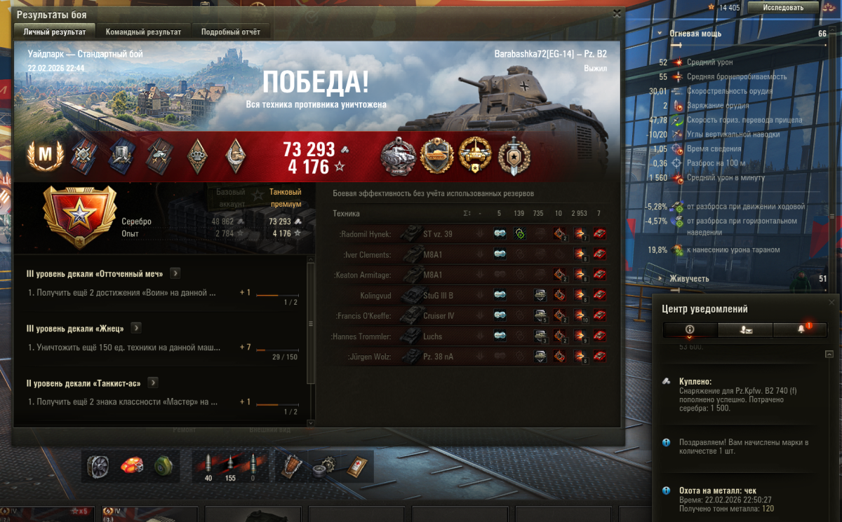 worster777 Опубликовано: 22 февраля Игроки 9 764 публикации 35 112 боёв Жалоба Поделиться Опубликовано: 22 февраля 22 фев 2026 - 17:32 пользователь Galakt сказал:Норм бонус к обычным каткам. Жаль раз в год такое событиеСогласен. Лично я за любые ивенты.О, веселей пошло. Думаю, до утра разберут Голда - это выдуманная проблема. Я, средний игрок, которых в нашей любимой игре 99%. С момента регистрации, на бебешках и без пайков, играл в 1700 среднего на десятках. Три года назад начал играть на фулфарше, результаты около 2200. Ну не такое сильное влияние голда оказывает на геймплей, а статисты и на бебешках будут делать такие же результаты, как и на фулголде. (с) gentleman_v_labserdakehttps://vkvideo.ru/v...56259581?t=4m0s Ссылка на комментарий Поделиться на других сайтах Другие способы поделиться...