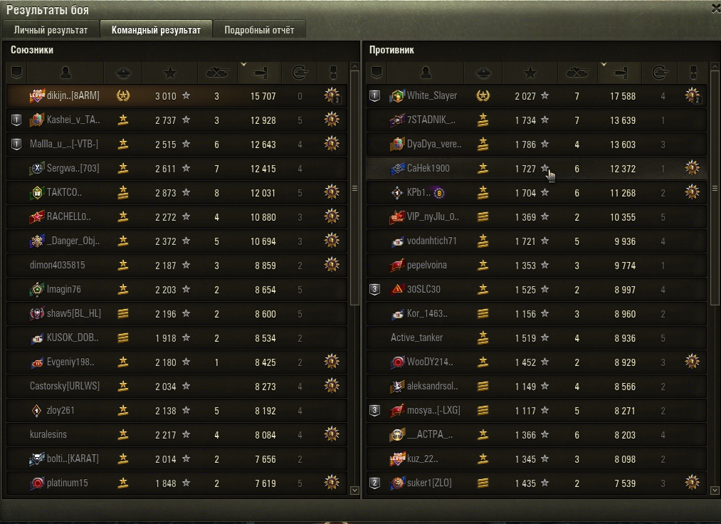 dikijnub Опубликовано: 3 марта Игроки 3 161 публикация 33 068 боёв Жалоба Поделиться Опубликовано: 3 марта Не дают генерала? Мало выходит серебра за бой? Вы просто дирижабли фармить не умеет! Я был самый бесполезный для команды в этом бою. -------------------------------------------------------------------------------------------------------------------------------------Статистика по жетонам в автомате 2025/26: Потрачено 56 жетонов. Получено: 10 раз х2 резервы на опыт, 1 резерв на серебро, 4 раза 1 день ПА, 2 раза 3 дня ПА, 8 раз 100 тыс. серебра, 2 раза 250 тыс. серебра, 3 Новогодних контейнера, 3 учебника, 4 стиля и 19 раз декали. Продолжаю наблюдения. Ссылка на комментарий Поделиться на других сайтах Другие способы поделиться...