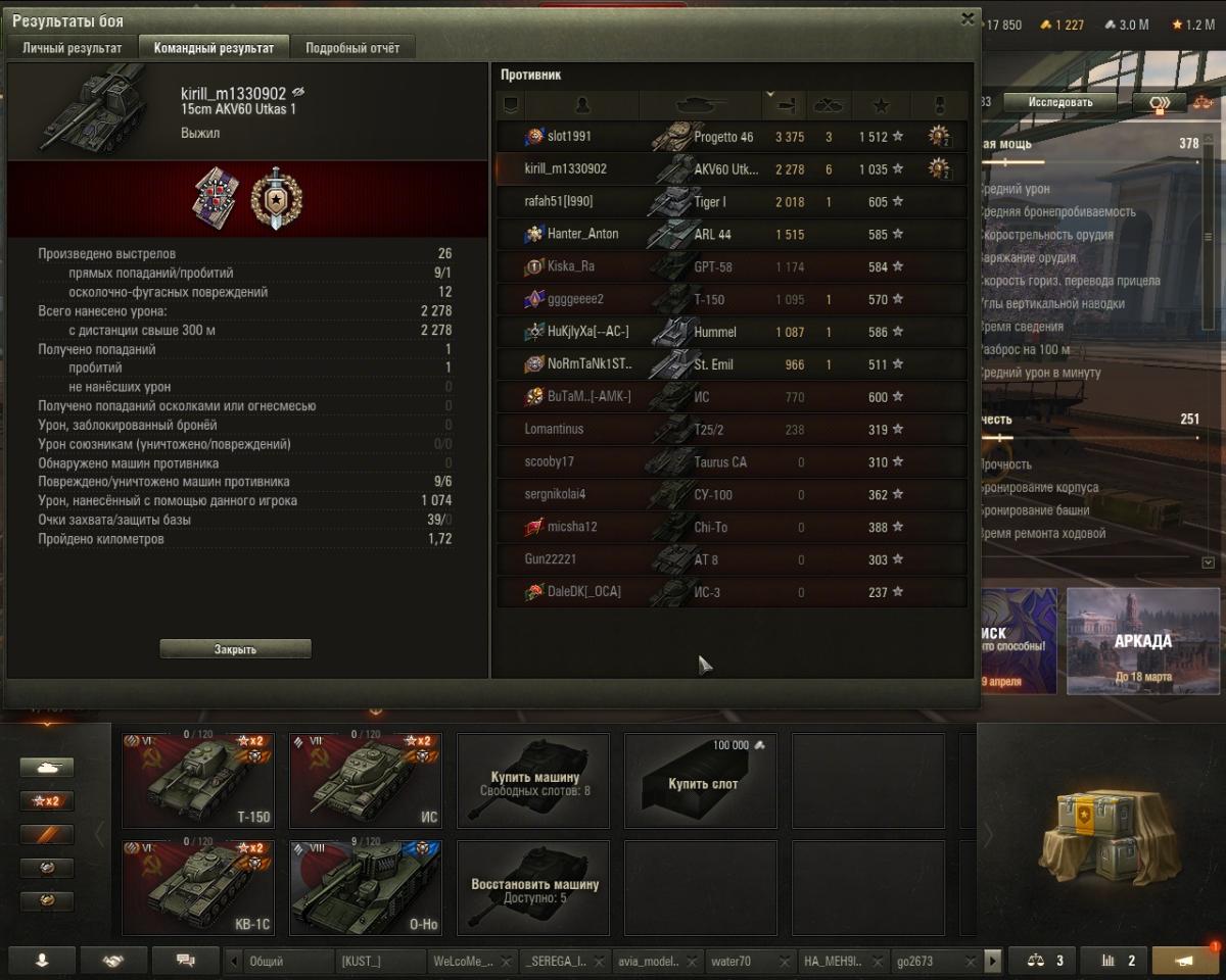 ewmw Опубликовано: 14 марта Игроки 2 315 публикаций 94 917 боёв Жалоба Поделиться Опубликовано: 14 марта 14 мар 2026 - 18:09 пользователь DAVID_FINCHER сказал:Сегодня, для любой арты - главная проблема: турбачи по 2-4 минуты. Не успеваешь настрелять уроний. Сейчас катаю 9ку шведов. Хочу сказать, что рано делать выводы, надо откатать несколько сотен боев, посмотреть на результат в сравнении с другими артами. Мое мнение: у шведов кассеты я воспринимаю как классную фишку! На этой арте надо играть как на обычной - кидать по одному снаряду, а если пока ждешь цель, дозарядился 2 или 3 снаряд, есть возможность (не часто) закинуть все три. Было несколько раз уже, когда залетало по несколько снарядов! Реплей покажи. Не верю тебе.три снаряда в цель. Ведётся набор в клан без обязательств: https://lesta.ru/cla...paign=wot-forum Ссылка на комментарий Поделиться на других сайтах Другие способы поделиться...