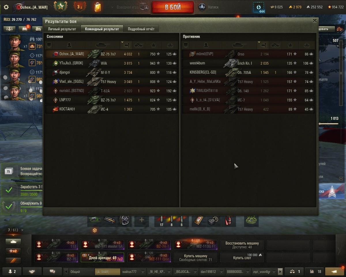 Ochoxhun Опубликовано: 11 марта Игроки 8 491 публикация 103 426 боёв Жалоба Поделиться Опубликовано: 11 марта (изменено) 12 мар 2026 - 00:48 пользователь ACID_DRINKER сказал:Скатал несколько боёв ЕБЗ добить (удобная тема, когда в пятёрку попасть надо). Ну-у-у-у, всё в старых ритмах - клоуны на TVP, на Концептах колёсных и т.д.Глянул задачи - опять эти фраги, попробуй ещё подсоси... Не-не-не. 2500 голды - это, конечно, заманчиво, НО НЕТ. Вон , смотри как весело на арендных танках кататься Мы же не на чемпу играем а на монетки, а в нашей категории категорически не на что ныть!!! У нас внизу всё очень весело!Можешь даже взвод кидать....если монетки трудно сбивать... Кстати, ДЫМ изменил ход боя в нашу пользу, они дружно поехали вчетвером и трое их крыли с горы, НО, кто то из наших на кучу наших кинул дым и тем 4 что дружно на нас поехали пришел кирдык, а те трое что их прикрывали просто ничего не видели! Кстати, 9 очков в БП дали НЕПЛОХО! Фраги нужны, так пофиг на победу, ШтугМаус не пробивается (оно еще и на каток не ставится) выизжаим, торгуем своим хп и все же выцеливаем ему НБЛ!Задача на монетку пройдена!Че та брони прибавилось ТЭТ100 ШтугМаус....как то без пробоя тяжеловато! Что, кто-то там берет базу и их 2, а нас 4 , да пофиг, у каждого своя игра, я вот очки престижа собираюВот видите, собирать монетки весело, даже если поражения одно за другим!!! Изменено 11 марта пользователем Ochoxhun Ссылка на комментарий Поделиться на других сайтах Другие способы поделиться...