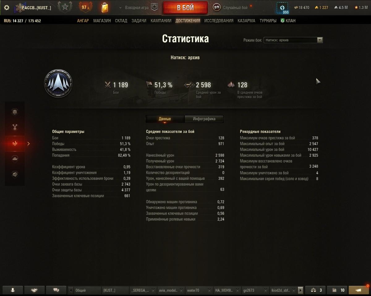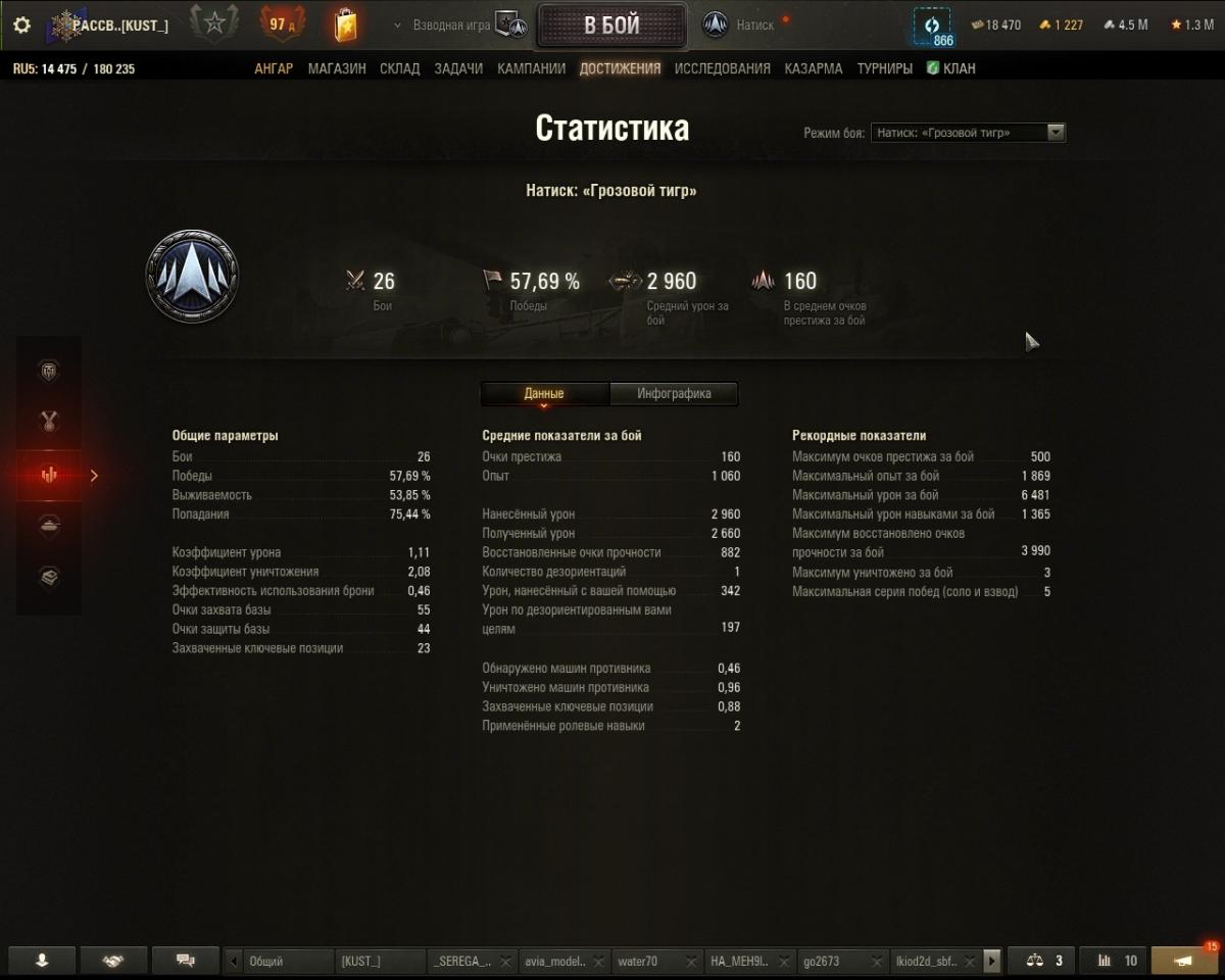PACCBET_HACTunuT Опубликовано: 18 марта Игроки 208 публикаций 7 116 боёв Жалоба Поделиться Опубликовано: 18 марта (изменено) 18 мар 2026 - 11:59 пользователь xViTuSx сказал:Я только уже после отправленного сообщения сообразил, что, скорее всего, оборудования нет. Хз как вы так играете. На твинке, без оборудования и экипажа, да ещё и в легенду.Тут на основе из железа только нос в бронзу показал и тут же 8 поражений подряд .При том, что в январе из бронзы в серебро вышел играя в натиске дней 7-10 всего.Вы, скорее всего, читеры какие-то. Может модами запрещенными пользуетесь 18 мар 2026 - 12:32 пользователь El_Pollo_Loco сказал:на хори больше не играй, там сложно в этой сезоне .играй на вазике, 62а и на БЗ-75.всё.в лт ты не умеешь.ис-4 медленный, не на всех картах зайдёт, но где-то в городе может и сможешь реализоватьЗабавно, даже играя в 35% побед можно в бронзу войти, 40% входишь в серебро, 45% входишь в золото, в золоте желательно уже 50%, выше золота выше 50%...Просто разница очков все время сокращается, чем выше ранг, тем меньше разница между победой и поражением....Ничего сложного в Натиске на низких рангах нет, рулят абилки....если хильщик хилит себя и другого парня, то эта команда выигрывает, если хильщик хилит только себя, то эта команда проиграет, даже если там супер игрок... В бронзе серебре Хори вполне рулит, ис4 вообще рулит, потому что он хильщик, даже ничего не делая, только пока его разбирают, союзники могут уже катку затащить...Вы забываете, это низкие ранги, бронза- серебро, тут можно легко двигаться просто побеждая внизу списка! Вот у меня что в бронзе...и .это пока с обычной оборудкой, подумаю как усилить танки 7Х7 , просто хочу попробовать Т3, пока думаю усиливать боновой или Т3...Хотя на хори играть стало тяжелее, однако по прежнему неплохо, потому что снайпер, игра легкая, стой подальше , жми абилку и метко попадай... Для рангов бронза и серебро смотреть каких то супер игроков, просто бесполезно, тут все играют как попало и на чём попало ( разве что, какое оборудования поставить, но у меня нет Т3 и бонового даже на 2 танка), надо быстро принимать решения по ходу отсчета и когда началось.Я руководствуюсь принципом, если танк покрашен, то игрок знает что на нем делать и надо помочь этому игроку реализовать его машину..... Изменено 18 марта пользователем PACCBET_HACTunuT Ссылка на комментарий Поделиться на других сайтах Другие способы поделиться...