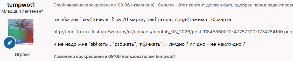 Arthur_Fleck Опубликовано: 12 марта Игроки 3 071 публикация 20 479 боёв Жалоба Поделиться Опубликовано: 12 марта 12 мар 2026 - 15:53 пользователь E_V_1_L сказал:Зелёный слоникКультовый фильм Ссылка на комментарий Поделиться на других сайтах Другие способы поделиться...