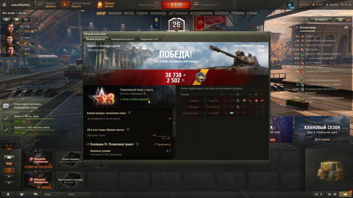 strike1986 Опубликовано: пятница в 20:28 Игроки 6 161 публикация 6 760 боёв Жалоба Поделиться Опубликовано: пятница в 20:28 27 мар 2026 - 23:27 пользователь Gatskiy сказал:"Золото" сразу после получения медалей начисляется, или в конце мероприятия??сразу единственной объективной истинной является процент побед по серверу. Ссылка на комментарий Поделиться на других сайтах Другие способы поделиться...
