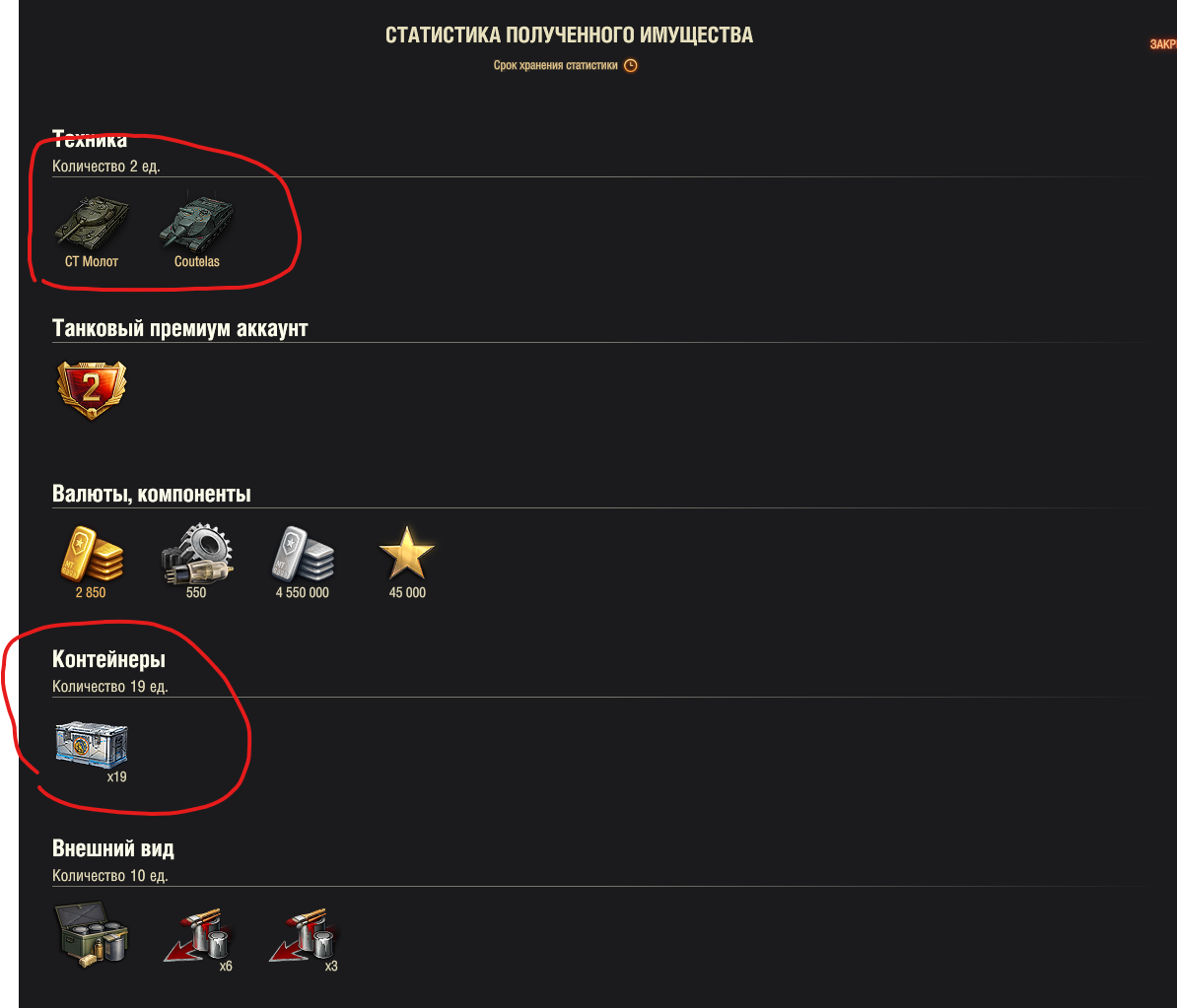 RunarBah Опубликовано: 12 апреля Игроки 49 публикаций 3 214 боёв Поделиться Опубликовано: 12 апреля Доброго времени суток. Итоги битвы за контейнеры. Потрачено 19 контейнеров - получено два танчика: Пт франц Кутелас и СТ Молот. Куплены за серебро и свободку. На этом все. Спасибо за сохранение реальных денег)))))))))) 2 Ссылка на комментарий