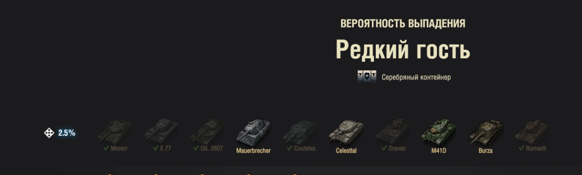viking_soul Опубликовано: 13 апреля Игроки 68 публикаций 69 185 боёв Поделиться Опубликовано: 13 апреля Из 35 последних контейнеров 1 редкий гость с как обыно минимальной фигней. Каким макаром это 20% ? 1 Ссылка на комментарий