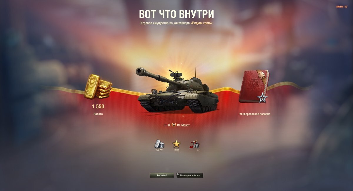 Pahlorus Опубликовано: 13 апреля Игроки 2 998 публикаций 28 563 боя Поделиться Опубликовано: 13 апреля Прокатился на этом аттракционе щедрости. В этом году без прухи, по стандарту. 1291 коробка (половина за новогоднее золото, половина за звонкую монету и несколько коробок выпали за что-то при игре в натиск), 201 гость, 4 танка из 5 отсутствующих, все гаранты. Маленький приятный бонус - немецкое безвелосипедное корыто не выпало). Ну такое, +- получил, что хотел. Бульдога конечно надо было выкупать заранее, существенно дороже обошелся. Ссылка на комментарий