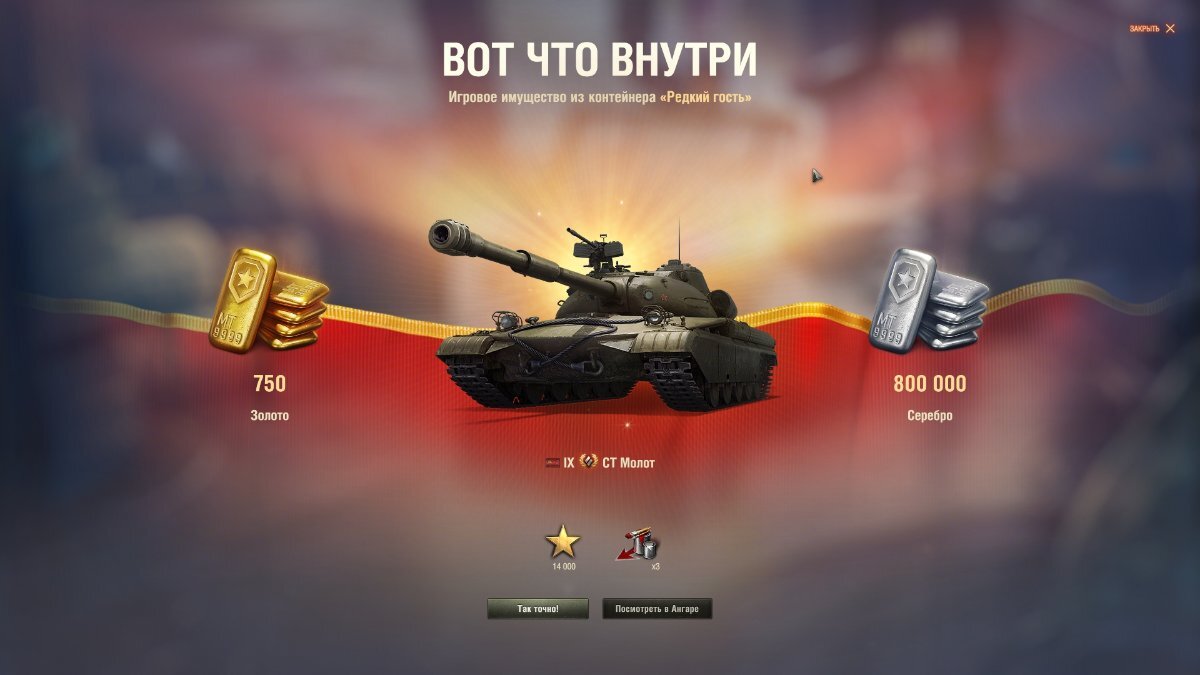 5410003 Опубликовано: 14 апреля Игроки 5 989 публикаций 98 499 боёв Поделиться Опубликовано: 14 апреля Сегодня выпал бульдог китайский (это 3 или 4 в ангаре однотипный танк с разными скинами)! Режим странный, вроде прикольный, но мелочи все портят - абсолютно непонятные выстрелы, то сносят на полкарты, то не двигают вообще, задачи странный какой-то писал, короче пройти и забыть! Коробки вообще нищие - одни инструкции ненужные! Открытие контейнеров Дата: 14 апреля 2026 г. 6:58 Открыто: Контейнер Дар Востока (x9) Получено имущество: Начислено компонентов: 70 Добавлено серебра: 150 000 Добавлено: Тонкости работы КПП (x5), Полоса препятствий (x5), Асбестовая обмотка (x5), Настройка прицела (x5), Руководство по тактике, тип 1 (x5), Данные аэрофотосъёмки, тип 1 (x5), Контейнер Редкий гость (x2) Ссылка на комментарий