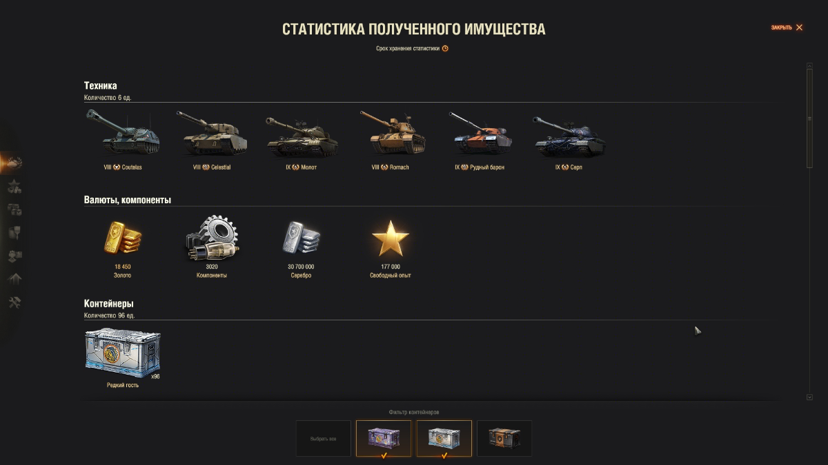 bubabumm Опубликовано: 15 апреля Игроки 104 публикации 21 556 боёв Поделиться Опубликовано: 15 апреля 1 минуту назад пользователь byt_ili_ne_byt сказал: На форуме вначале есть ответы. Одесский шум этот шанс или нет без понятия, всем по разному выпадает, мне Бурза выпала примерно с 25го редкого контейнера, прошел прогрессию Восток и покупал 7 контейнеров ежедневно за серебро и опыт в течении недели, за рубли купил 5 контейнеров за 117руб + 25 контейнеров за 3750 золота. мне тоже выпало. я открыл более 50 контейнеров, но это не отменяет того факта, что такое количество "пустых" открытий аномально и не правильно. Ссылка на комментарий