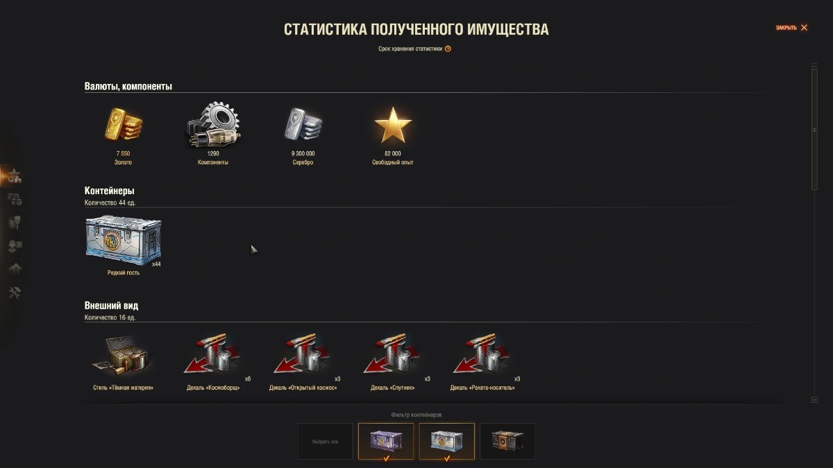 G00R Опубликовано: 16 апреля Игроки 1 415 публикаций 50 774 боя Поделиться Опубликовано: 16 апреля 10 часов назад пользователь vitas_satana сказал: В то же время невозможно посмотреть личную статистику открытия, только результат... Вроде бы не составит труда умозрительно подсчитать сколько ты открыл восточных коробков, а редкие учтены в статистике. Я целюсь не рукой: тот, кто целится рукой, забыл лицо своего отца. Я целюсь глазом.Я стреляю не рукой: тот, кто стреляет рукой, забыл лицо своего отца. Я стреляю разумом.Я убиваю не оружием: тот, кто убивает оружием, забыл лицо своего отца. Я убиваю сердцем. Ссылка на комментарий