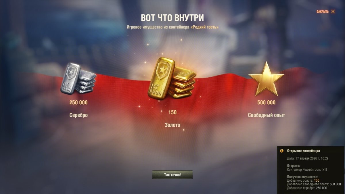 DEIMOS95101 Опубликовано: 17 апреля Игроки 459 публикаций 42 833 боя Поделиться Опубликовано: 17 апреля (изменено) 10 простых, из них - 1 редкая, а в ней - Джекпот Тратить их на то, чтобы вкачать три десятки по Орбите и закрыть первый сезон я, разумеется, не буду. Изменено 17 апреля пользователем DEIMOS95101 Открыта 10-я простая коробка 2 Ссылка на комментарий