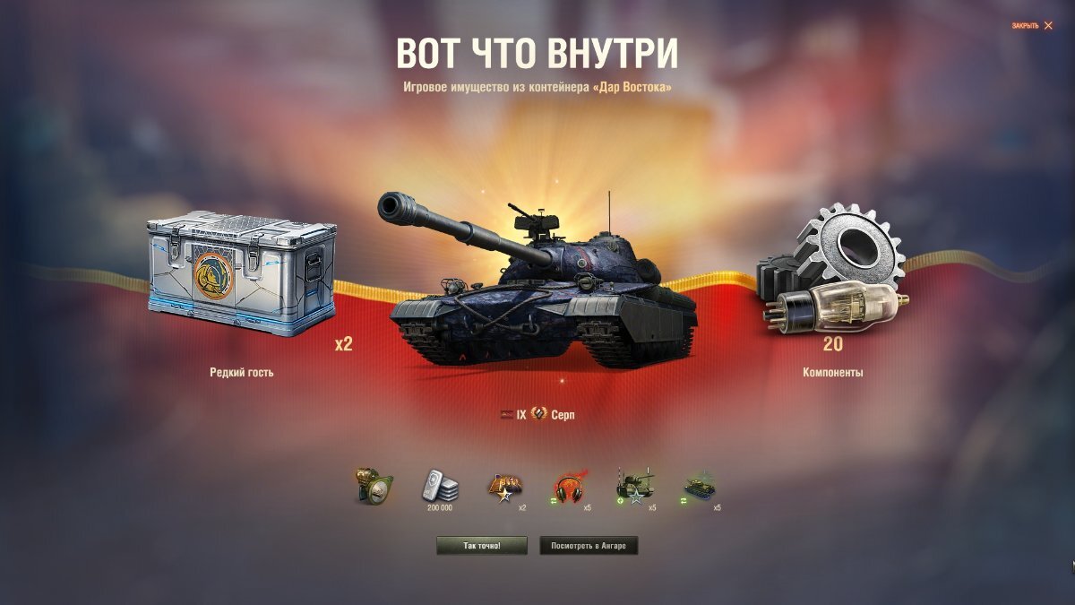 ACID_DRINKER Опубликовано: 18 апреля Игроки 2 151 публикация 908 боёв Поделиться Опубликовано: 18 апреля Короче, с 20 ящиков Востока - нищета и собаки (с). Всего две Редкие коробки, зато в них - всего - 2750000 серебра. В принципе, пойдёт... Но до гаранта осталось ещё очень много - 35 коробок. "Ответственные лица ложат болт" (с) Ссылка на комментарий