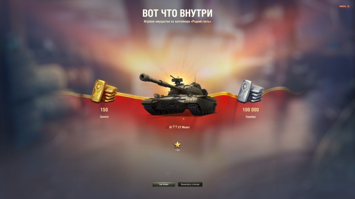 harrypotter777 Опубликовано: 18 апреля Игроки 965 публикаций 20 756 боёв Поделиться Опубликовано: 18 апреля (изменено) Е 77 был на 32 кейсе. Сейчас купил кейсы за свободный опыт 2 шт. по скидке и 5 за серебро, выпал молот. На 37 контейнере. Приятно было видеть заставку хотя не рассчитывал, держите меня семеро мне дурно) Открыл не знаю сколько обычных, голды может 8к+ потратил до этого а остальное серебро 5шт. и 2 шт. за свободный опыт. Изменено 18 апреля пользователем harrypotter777 2 Ссылка на комментарий