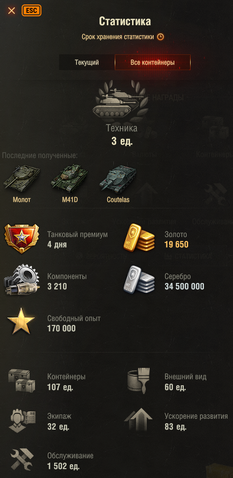 KUDES_Nick Опубликовано: среда в 06:38 Игроки 3 829 публикаций 52 084 боя Поделиться Опубликовано: среда в 06:38 (изменено) 12 минуты назад пользователь harrypotter777 сказал: У тебя что танков нет?) Радуйся компонентам, голде и инструкциям Да просто хотелось закончить на хорошей ноте. Типа вот последний танк выпал и закончил ивент. А так на середине 22 до гаранта бросил и вот это чувство не покидает что нужно добить до конца начатое. Компоненты по сути это 1.5 оборудки т3 уровня... Ну и как то радости это не прибавило особо то)) Голда, которая была с коробок в них же и уходила в основном, оставлю тыщ 10-15 к патчу на зверобоя. Инструкции ... Изменено среда в 06:41 пользователем KUDES_Nick Ссылка на комментарий