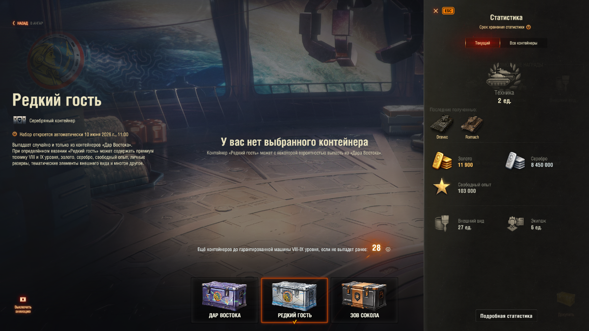 ex3me Опубликовано: 8 апреля Игроки 105 публикаций 65 707 боёв Поделиться Опубликовано: 8 апреля 20 коробок - 10 за 750голды, 5 за серу, 5 за свободку. Из них 4 редких гостя. С 1 гостя - ромах, с другиз по 150 голды. Ссылка на комментарий