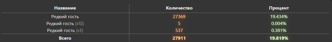 Acrimony Опубликовано: 8 апреля Игроки 664 публикации 63 977 боёв Поделиться Опубликовано: 8 апреля Что-то какая-то чепуха, ребята, честное слово)). Решил попробовать, открыл около 40 коробок и только 2 редких гостя, а остальное какие-то инструкции и пручая лабуда. 2 1 Ссылка на комментарий