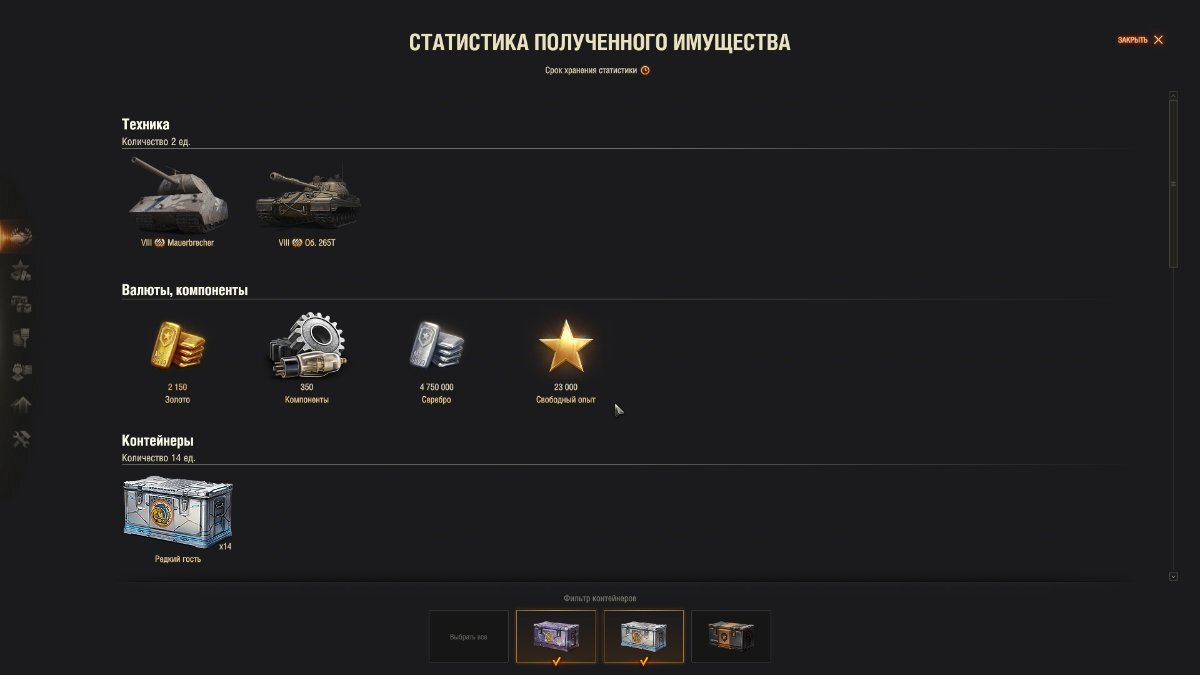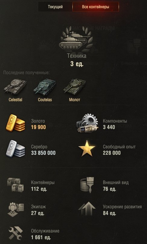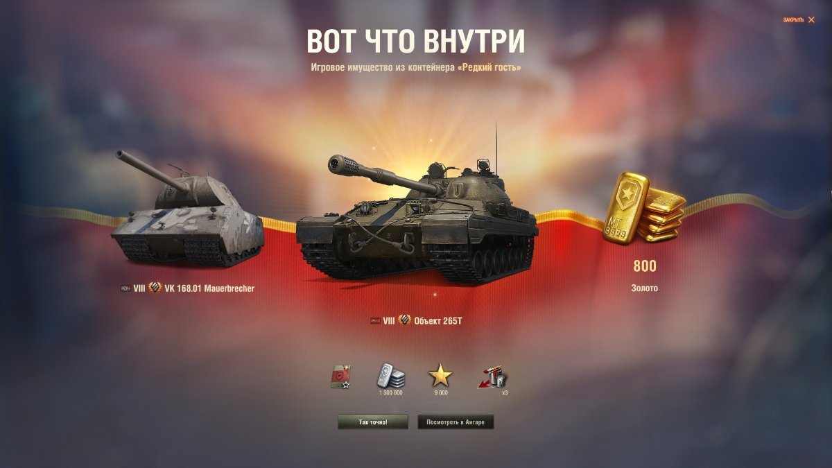Conspirolog Опубликовано: 8 апреля Игроки 196 публикаций 43 971 бой Поделиться Опубликовано: 8 апреля Открыто всё, кроме велика, без велика. Китай лт не было, получил и новые соответственно. То что коробки жадные, ранее обозначал, ибо на тесте крутил на 2 акках по два раза по 100к голды + то что прилетело туда же. Если у вас нет прошлогодних танков, то выбить все танки будет дорого. Не рекомендую крутить эти коробки, ибо в ветках прокачиваемой техники достаточно. 1 Ссылка на комментарий