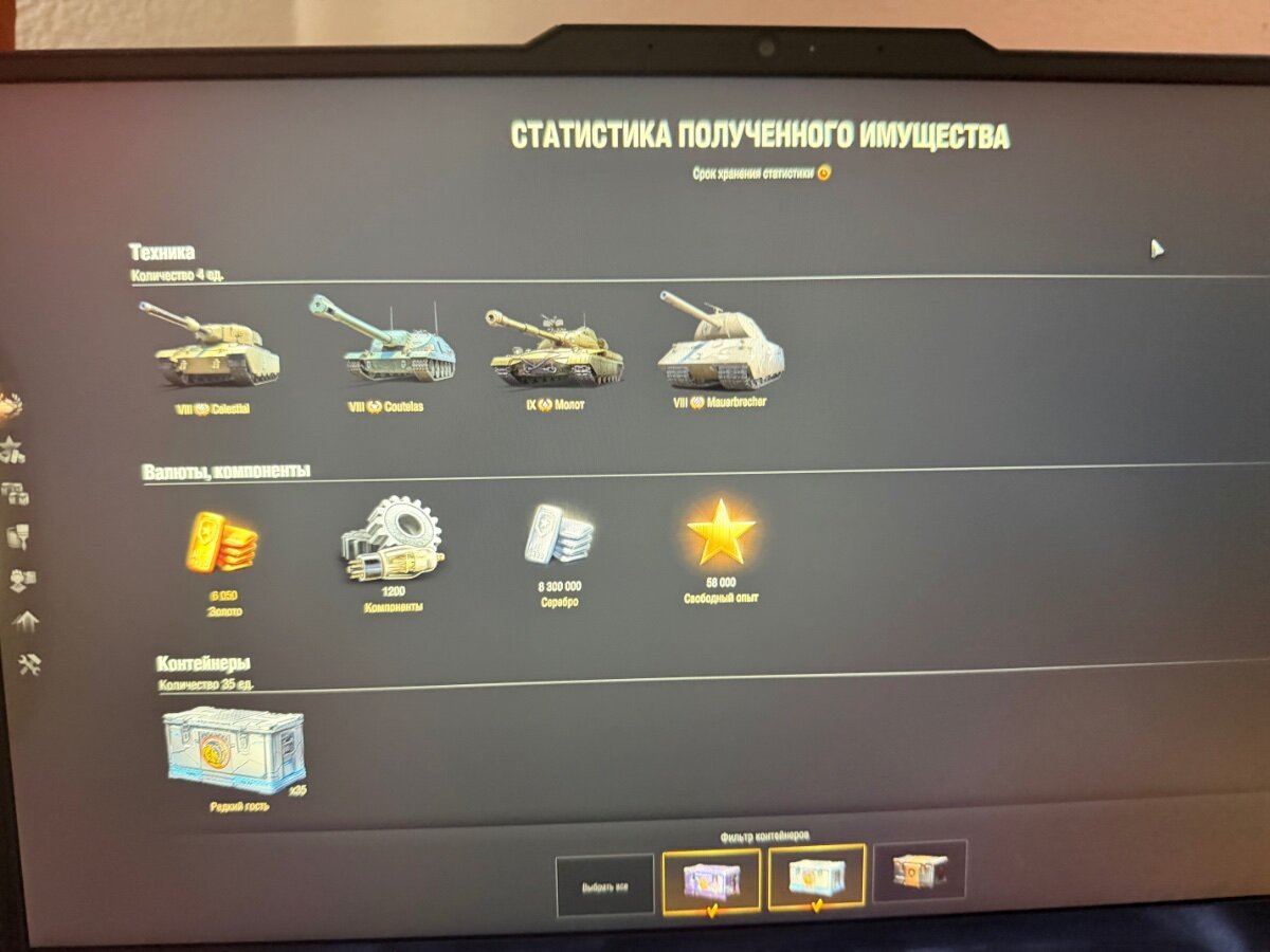 Opio Опубликовано: 9 апреля Игроки 5 031 публикация 37 555 боёв Поделиться Опубликовано: 9 апреля Только что пользователь Opio сказал: нихочу конечно агрить никого. вчера было куплено 135 коробок. из которых 35 улучшеных. и вот танки с них. спасибо за внимание Ссылка на комментарий