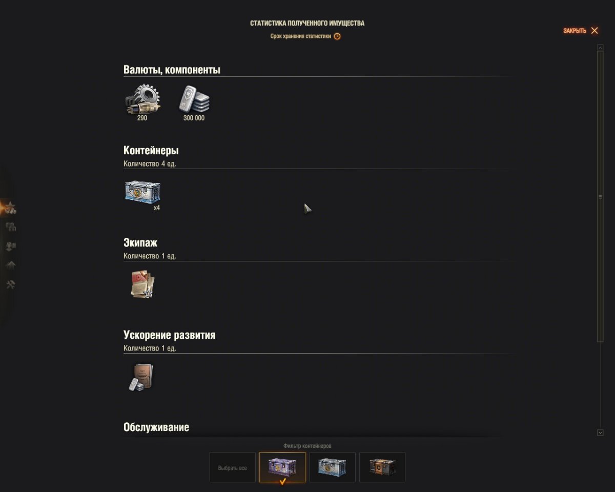 HoarFighter Опубликовано: 10 апреля Игроки 32 948 публикаций 76 210 боёв Поделиться Опубликовано: 10 апреля 1 минуту назад пользователь senior_Mazilo сказал: На 4 аккаунтах брал ящики со скидкой и за серебро, ни разу не получилось 20% редких, всегда содержимое ящиков по своей ценности и рядом не лежало с потраченным на них золотом и серебром. Вчера на твинке за серебро и свободку взял 10 ящиков, выпало 4 редких, из них 1500 голды и танк. Не всё, что кажется очевидным, является подлинным. Ссылка на комментарий