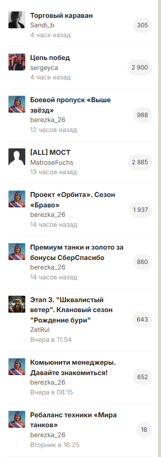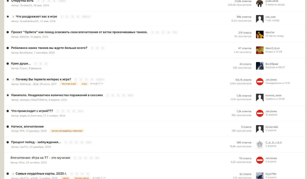 Vik040468 Опубликовано: 17 апреля Игроки 1 678 публикаций 13 916 боёв Поделиться Опубликовано: 17 апреля 16 часов назад пользователь Sergic972 сказал: Кому и зачем нужен такой форум? Ни одной темы по реальным вопросам игры . "Вопросы разработчикам" и "Ответы разработчиков" не работают . Разработчиков читаем только на первой странице при каком-нибудь ну очень важном , по их мнению, событии. Неудобные темы закрываются пачками. Еще раз вопрос : Кому нужен такой форум? Троллятине порезвиться? Согласен. очень неудобно. 1 Ссылка на комментарий