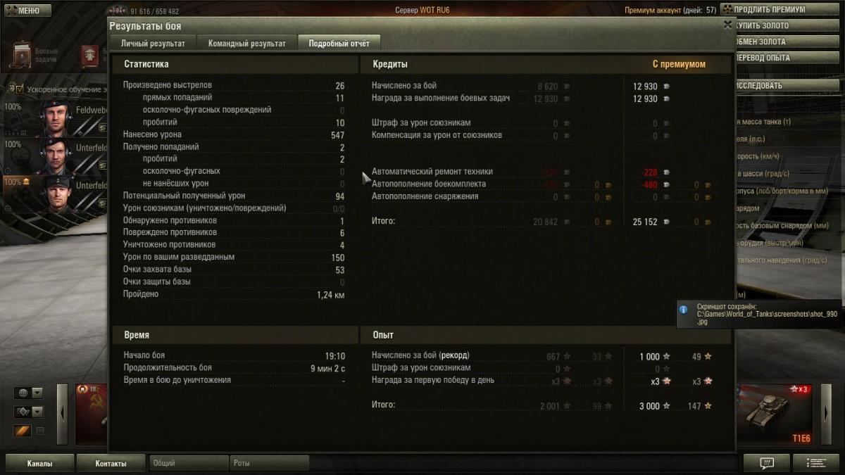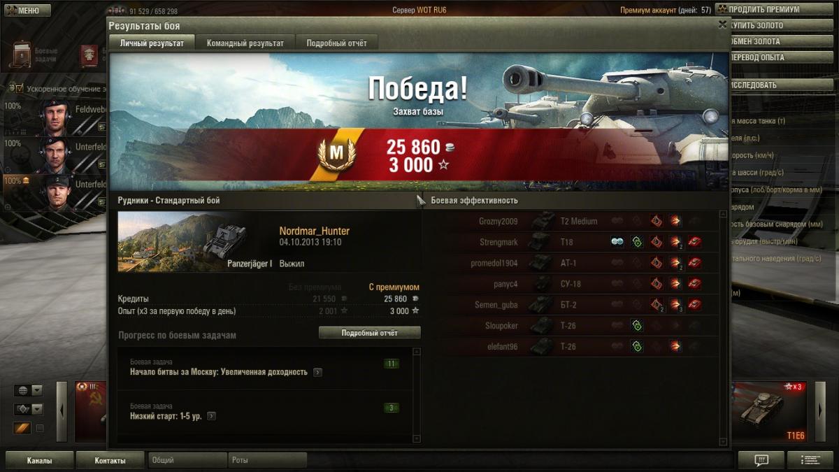 Nordmar_Hunter Опубликовано: 4 октября, 2013 Игроки 1 885 публикаций 37 551 бой Поделиться Опубликовано: 4 октября, 2013 (изменено) Совершенно случайно взял Мастера (дай, думаю, Х3 собью). 24й бой на сей машине.Стрелял вроде частично по чужому засвету, по фрагам и поболее было (5 при победе и 9 при поражении). Да и урон вроде не максимальный. Но, однако ж, рекорд у меня для данной машины и мастер...Победа!Бой: Рудники 04.10.2013 19:10:42Танк: Panzerjäger IПолучено опыта: 3 000 (x3 за первую победу в день)Получено кредитов: 25 860Достижения в бою: Знак класcности «Мастер»Если честно, думал, если возьму Воина-будет мастер. Воина не взял, но чудом в концовке вместе с круизёром не дали слиться выигрышному бою. Т-26, конечно, зверь был.P.S. Добавил реплей: http://wotreplays.ru...r-panzerj_ger_i Изменено 4 октября, 2013 пользователем Nordmar_Hunter 1 Я кустик, кустик, кустик, я вовсе не ПТ(с) Я.Riot_Guy (28 Май 2014 - 12:29) писал: "Балансными правками и переработкой карт занимаются разные отделы. Хотя при построении концепции переработки или новой карты к геймдизам таки обращаются." Взаимовыгодное сотрудничество с ВГ: мне не нужно ранжирование карт, ВГ не нужен мой донат!Худшие обновы WoT/МТ: 4 место: ввод колёсных наркоманов. 3 место: глобальный нерф арты с заменой урона на стан. 2 место: выведение самых интересных карт путём овноранжирования на средних уровнях. Худшее место: обновление Альфа, запустившее на Орбиту сами знаете что Ссылка на комментарий Поделиться на других сайтах Другие способы поделиться...