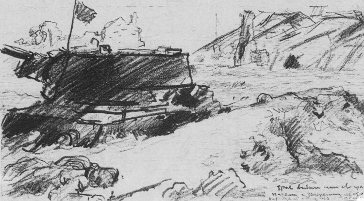 MucTep_TBucmep Опубликовано: 23 мая, 2012 Игроки 630 публикаций 28 485 боёв Поделиться Опубликовано: 23 мая, 2012 23 Май 2012 - 18:08 пользователь radial сказал:Он в земле что-ли утонул? Или нижнюю часть куда-то унесло?есть такой способ маскировки боевой техники - http://s003.radikal.ru/i204/1205/83/1ac183119082.jpg На рисунке, который выложил ТС -танк находится в окопе, слева можно разглядеть убитого солдата, он на поверхности земли.Похоже, что рисунок сделан во времена войны, справа неразборчивый текст, сделанный карандашом художника, что-то про ров. 1 Ссылка на комментарий
