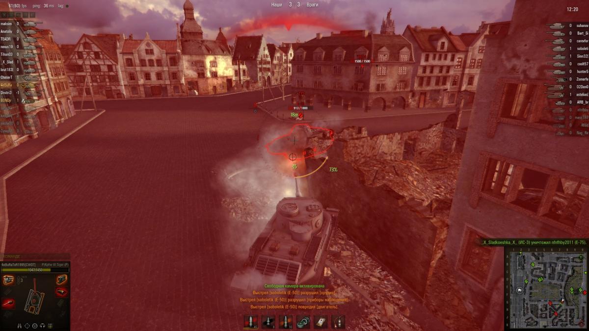 Сейчас играл на тигре п,на меня выскочил вражеский е50,у нас была с ним перестрелка,и тут в один момент он с выстрела критует мне 3 модуля:ствол,триплекс и двигатель.