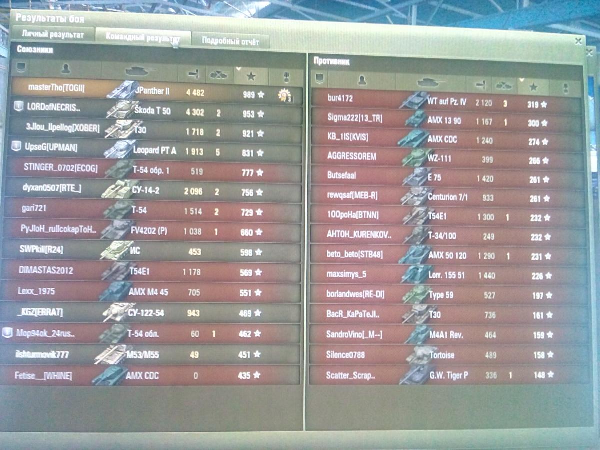 Со стороны противника и союзников встретил я понимание, но один игрок вражеской команды - 1390 - в нецензурной форме заявил, что я просто рак и играть не умею - потому и развёл тут плачь Ярославны. Ничего ему не ответил, лишь кинул жалобу и договорился с союзниками, что они лес будут светить, а я на центр поеду от гряды центральной раздавать болванки свои увесистые. Союзники правильно поняли выражение "светить лес" и вскоре продавили мы этот фланг, продавили и холмы. А потом, в после боевой статистике посмотрел я свои результаты, глянул статистику того говоруна из вражеской команды. Получилось, что плачущийся рак мастерTho напинал четыре с половиной (почти) тысячи урона, а процент побед бывалого лт-вода равен 49%. Девяностик, к своей чести, признал, что был не прав и пожелал всего хорошего. Сказал, что обознался.