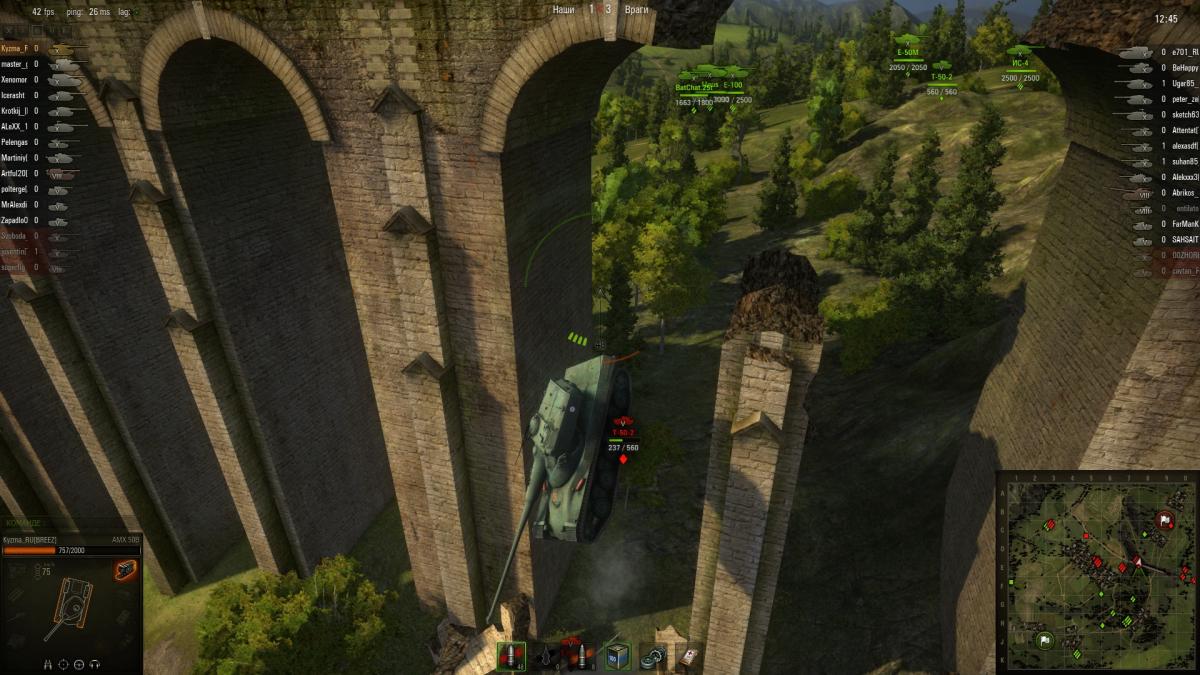 Kyzma Опубликовано: 31 августа, 2012 Игроки 507 публикаций 70 946 боёв Поделиться Опубликовано: 31 августа, 2012 Представляю вам скриншоты падающих танков,которых мы так долго ждали) Падающие Маус и Е-100 это просто шедевры)P.S. На тесте это весело ,но надеюсь на основе Летающих крепостей будет меньше) 2 " Лучше проиграть с эпическими достижениями,чем победить ,ничего не сделав" Ссылка на комментарий