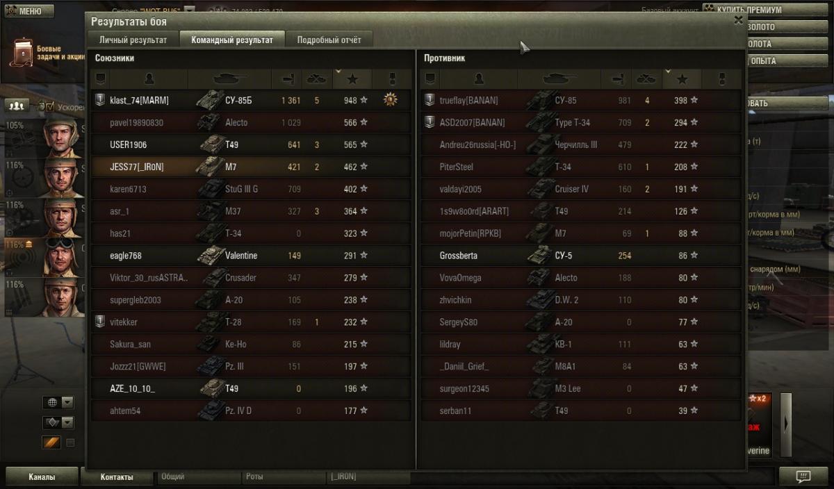 JESS77 Опубликовано: 16 августа, 2014 Игроки 11 947 публикаций 35 093 боя Жалоба Поделиться Опубликовано: 16 августа, 2014 К вопросу о балансе респов. Балансер слегка лопухнулся, дав противнику помимо кланового, и как оказалось, довольно умелого взвода, аж 3 тяжа, нам - ни одного. Зато мы были на нижнем респе, и это перевесило чашу весов. Сливались 2:7, но у нижнего респа есть позиции для дефа, а у верхнего нет, поэтому когда мы отбились, противника просто порвали. И такой расклад типичен для этой карты. Просьба создать позиции для дефа верхнего респа, пусть не такие читерные, как была, но они тут остро необходимы. Рандомный клан приглашает вместе собрать плюшки "Боевого похода". Финка 10 лвл. Ссылка на комментарий Поделиться на других сайтах Другие способы поделиться...