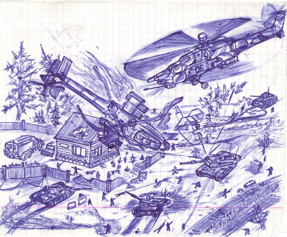 anonym_WjwbduADGXPj Опубликовано: 13 октября, 2012 Игроки 692 публикации 26 684 боя Поделиться Опубликовано: 13 октября, 2012 13 Окт 2012 - 09:55 пользователь CRICHNAIT сказал:Может вы не поняли рисунок?из рисунка я понял что это момент боевого действия с применением пехоты, наземной бронетехники и двух вертолетов. тот что слева сбит и лежит на земле рядом с домиком. скорее всего картину боя хотели передать с высоты второго вертолета (судя по размеру на большой высоте). в таком случае можно объяснить его большие размеры по отношению к остальным объектам на картине, однако вертолет на земле имеет такие же размеры как и тот что в воздухе. их чего следует что либо нарушены его пропорции по отношению ко второму вертолету, либо если высота второго вертолета не большая то нарушены пропорции всех объектов к обоим вертолетам Ссылка на комментарий
