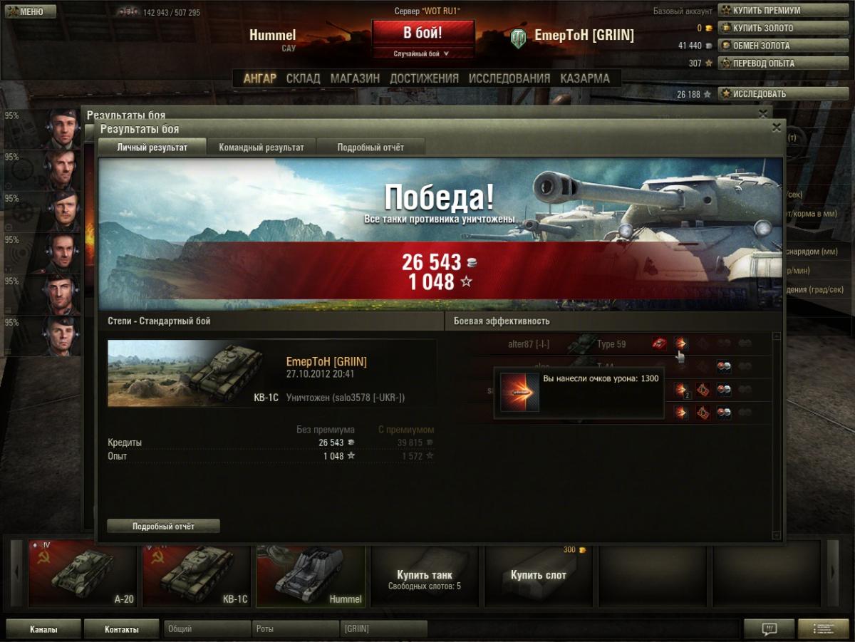 DuHast92 Опубликовано: 28 октября, 2012 Игроки 258 публикаций 30 058 боёв Жалоба Поделиться Опубликовано: 28 октября, 2012 1 выстрел 1300 урона. Когда БК взрывают показывается крит. КРИТА НЕТ на картинке. я хз как он так смог 1 Ссылка на комментарий Поделиться на других сайтах Другие способы поделиться...