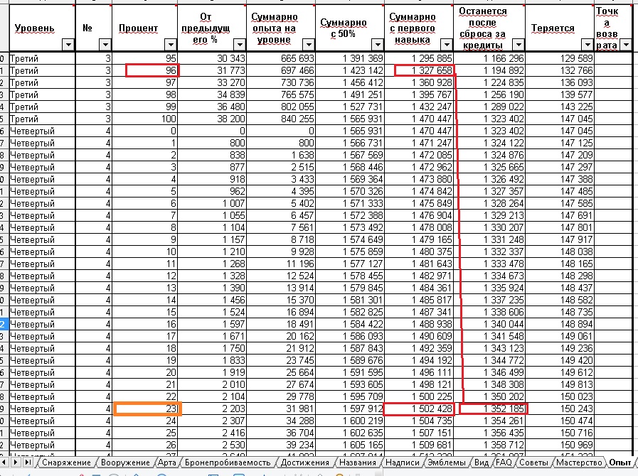 KPOT2338 Опубликовано: 5 июня, 2016 Игроки 21 583 публикации 38 512 боёв Поделиться Опубликовано: 5 июня, 2016 05 Июн 2016 - 21:35 пользователь Gafka66 сказал: Уважаемые разработчики, хочу повторить свой вопрос.Вы изменили систему штрафов при сбросе навыков или просто глюк? При 23% (частично) 4-го перка, сбросил за серебро командиру танка навыки, чтобы убрать радиоперехват. И получил 97 % 3-го перка, причем до 98% нужно еще больше 25к опыта. Приблизительные подсчеты дают, что штраф составил около 130к опыта. При предложении сброса навыков другому члену экипажа указано, что сброс будет до 96 %. Теперь что, получается, что без голды вообще перки не сбросишь?http://cdn-frm-eu.wargaming.net/wot/ru/uploads/monthly_06_2016/post-11213003-0-20604700-1465151583_thumb.jpghttp://cdn-frm-eu.wargaming.net/wot/ru/uploads/monthly_06_2016/post-7033054-0-05917000-1465155861_thumb.jpg"Точки возврата"1-й перк - 66%2-й перк - 41%3-й перк - 49%4-й перк - 52%5-й перк - 53%6-й перк - 54% Что не делается, всё к лучшему! (с) Cos 700=0.3420, Cos 850=0.0872Кто нибудь привяжите его руки к подлокотникам, и клавиатуру у него заберите. И вообще любое устройство с которого можно печатать. (с) kojot7Введите уже артприцел для всей техники Ссылка на комментарий Поделиться на других сайтах Другие способы поделиться...