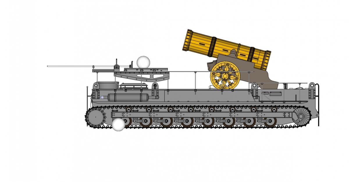am57 Опубликовано: 26 ноября, 2012 Игроки 21 публикация 26 608 боёв Поделиться Опубликовано: 26 ноября, 2012 САУ-Обр890ЦП+К Самоходное артиллерийское орудие особо крупного калибра разрабатывалось в предвоенный период. 890 мм орудие конструктора А.Чохова обр.1586г. Изначально разрабатывалось для стрельбы исключительно картечью, но после разработки специального фугасного снаряда круглой формы ,могло уже с успехом бороться с тяжелой техникой противника. Шасси на гусеничном ходу , силовая установка-8 дизельных В-2(ПО 4 на борт) экипаж-много В серию машина не пошла по ряду конструктивных недоработок, одна из них ;неудачная геометрия фугасного снаряда -постоянно скатывался с орудийного досылателя и расчет очень много времени тратил на поиски и водворение на место боеприпаса,в связи счем резко снижалась скорострельность орудия. И к тому же вражеская разведка похитила всю техническую документацию на самоходное шасси и впоследствии использовала её для изготовления своего свертяжелого орудия Карл. спасибо за внимание. 3 Ссылка на комментарий Поделиться на других сайтах Другие способы поделиться...