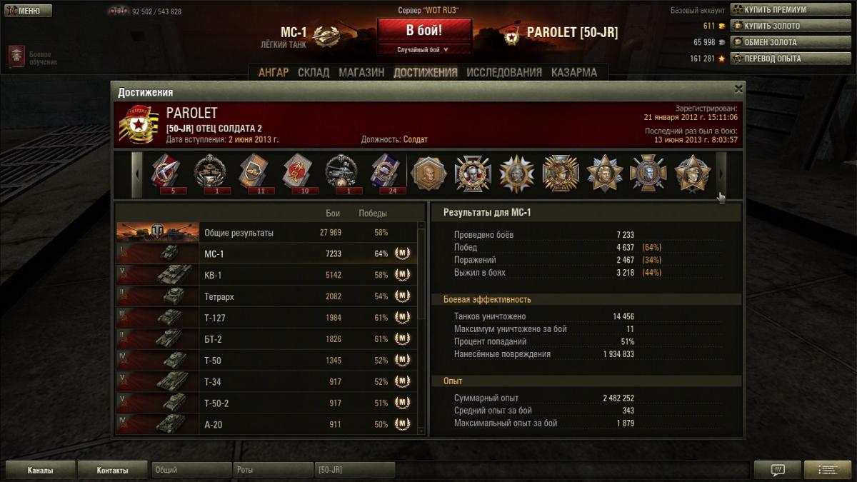 PAROLET Опубликовано: 13 июня, 2013 Игроки 8 400 публикаций 208 123 боя Поделиться Опубликовано: 13 июня, 2013 (изменено) 13 Июн 2013 - 13:20 пользователь Boevoy_Lis сказал:Я вас, конечно уважаю, но нагнуть Т18 довольно сложно, если там конечно не полный ололо-нуб сидит. Стаей забить, это да. Все-таки не забывайте, что она хоть и довольно внушительная, но все же ПТ и, как правило, сидит в кустах ждет добычу. Если лис, то должен быть из клана лисиц? Слушайте, а вам реально доставляет играть на МС-1? Он же медленный и косой.... Можете скрин сделать экипажа по перкам?Я не Лис, но горжусь дружбой с ними.1. Ни чего не имею против Вас и Вашу Т18. Но нагибать на Мосе можно всё что угодно. То же самое Вы можете сказать и про Т18.Несколько сотен страниц назад я описал два боя(по невероятной случайности прошедших один за одним) в которых взвод из трёх охамевших "нагибаторов" на Т18 был слит мной принципиально. Я их выпас в Малиновке, а потом на Рудниках. Такого количества поноса в чате я больше ни когда не слышал. Один Мося способен нагнуть стаю Т18, и наоборот.2. Вы удивитесь но мне реально доставляет играть на Мосе. Я на нём закружу любого игрока на Т18, даже Вас. О косости могу сказать то же самое и про Т18: она же косая - всё относительно. Скрины моего экипажа можно найти отлистав десяток страниц назад, но могу попозже скинуть свежие. А вообще Вы интересный собеседник. Вы не грубый и адекватный. Почаще бы заходили к нам такие гости - всегда рады! :honoring: PS. Вот и скрины моего любимого Моси и его отважного экипажа, а также его достижения. И надо отметить что я не самый лучший игрок на нём. Есть много парней намного лучше меня играющих на нём. Но и мне не приходиться краснеть за Мосю и за себя. Изменено 13 июня, 2013 пользователем PAROLET 3 Aut cum scuto, aut in scuto! Ссылка на комментарий