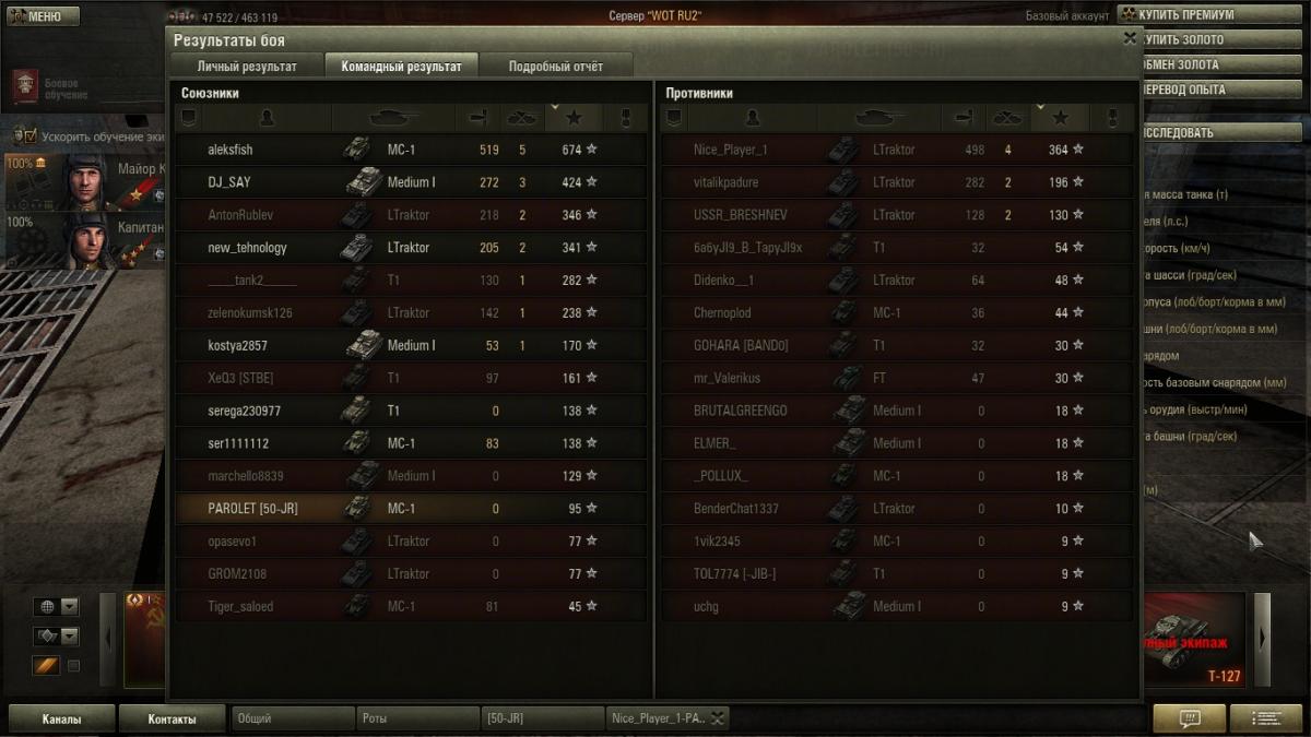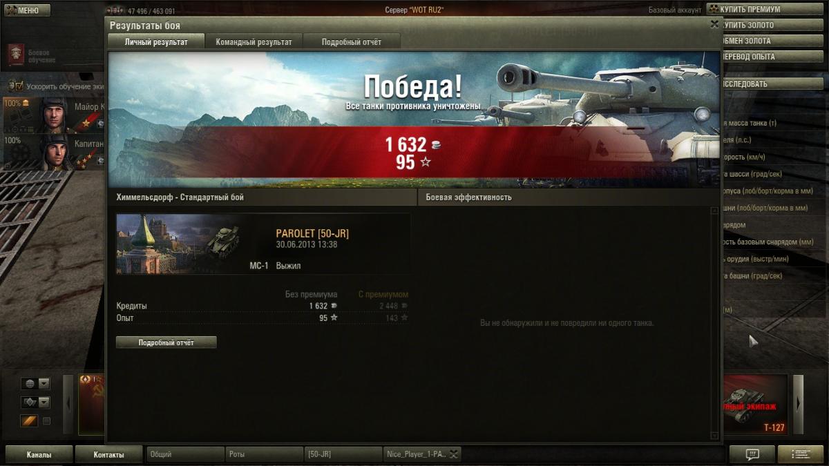 Wilde_Goos Опубликовано: 30 июня, 2013 Игроки 2 042 публикации 6 045 боёв Поделиться Опубликовано: 30 июня, 2013 30 Июн 2013 - 16:22 пользователь PAROLET сказал:Ещё раз Всем привет!Сейчас, в результате изнурительных боёв, завершился кошмарный путь от МС-1 до ИС-7. Полтора года назад я задался(безнадёжной) целью пройти этот путь за свободный опыт. Возможно кто то это вспомнит, страниц эдак тыЩа назад. :amazed:Вот два последних и очень контрастных боя на МС-1(реплей и скрины), и набиты последние капли свободного опыта - ИС-7 ОТКРЫТ у меня. Теперь копим бабло на него.http://wotreplays.ru...rf-parolet-ms-1Поздравляю, я сегодня вот это открыл и взялSpoilerhttp://4put.ru/pictures/max/657/2019638.jpg 2 Куплю билет в СССР, дорого!!! Ссылка на комментарий