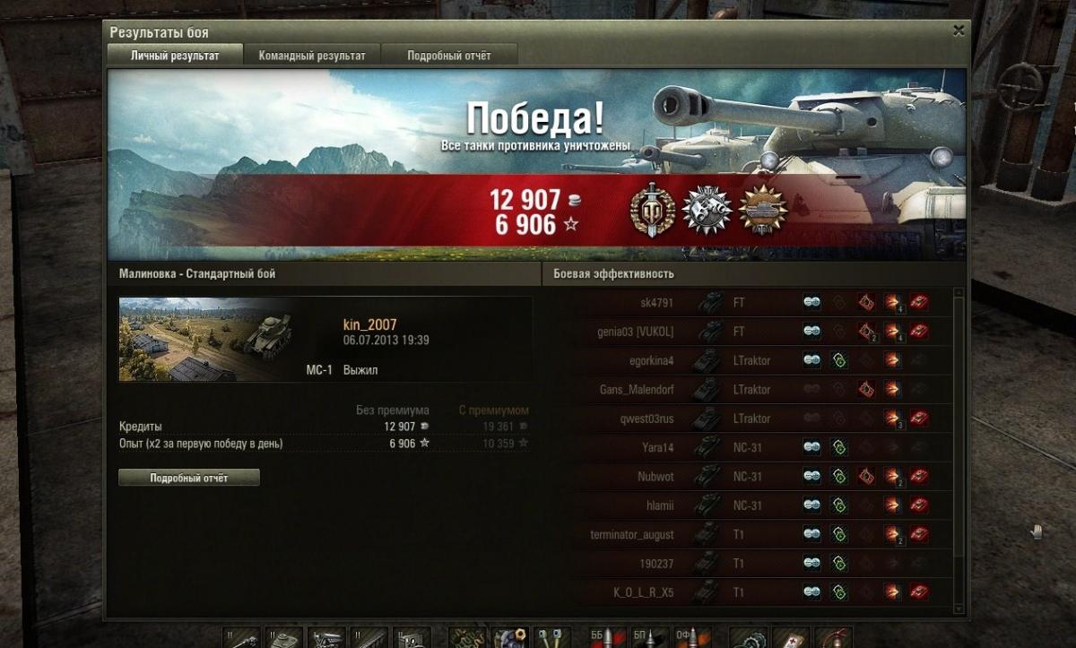 figvam_vsem131 Опубликовано: 6 июля, 2013 Игроки 983 публикации 36 678 боёв Поделиться Опубликовано: 6 июля, 2013 (изменено) УРААААА!!! Взят первый в игре Колобанов! И именно на Мосе, что вдвойне приятно. Ещё и в Химках! Правда, больше заслуга не моя, а оленизм и самоуверенность противника.Spoilerhttp://i46.fastpic.ru/big/2013/0706/3d/d914ab14f17ecd1c2ad6f38a2d9d2e3d.jpg вот ссылка на реплей, но там мало интересного (вначале на жд сильно затупил и чуть не слился, бодался в упор):http://wotreplays.ru...am_vsem131-ms-1 Правда, последний фраг халявный - похоже заснул Изменено 6 июля, 2013 пользователем figvam_vsem131 11 ВЕРНИТЕ "ПРОВИНЦИЮ" на 1 уровень и дайте первому уровню "Прохоровку!!!! Ссылка на комментарий