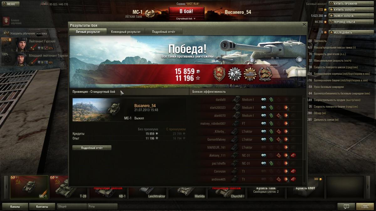 Nikck_M Опубликовано: 22 июля, 2013 Игроки 4 053 публикации 18 173 боя Поделиться Опубликовано: 22 июля, 2013 (изменено) 22 Июл 2013 - 12:47 пользователь Military_Fox сказал:А не позже?Нет,именно на Новый 2012 год можно было его получить,введя до 1 февраля бонус-код NEWYEAR.Мой первый прем-танк.Когда только зарегистрировался в игре,сразу бонус-код на него ввел.Первый бой на нем был,первые 2 фрага...22 Июл 2013 - 12:50 пользователь JaGuAr_ksta сказал:жаль. Очень интересный танчег. ПС: предложение все еще в силе?Как понимаю,на акааунте жены на нем играл?Предложение на Евросервере было на 9 мая и стоил он со Львом не менее 90 €. Изменено 22 июля, 2013 пользователем NIK_MAKAROV01 В этой игре заслуга не за прокачанным экипажем, а за наличием прямых рук и серего вещества в черепной коробке. Дай 44-хпроцентному нубу танк с 5-типерковым экипажем, он и на нем будет сливаться с точно таким же успехом, как и раньше© stalkerreturnПушистый Альянс - альянс любителей МС-1. Заявки оставлять тут. Ссылка на комментарий Поделиться на других сайтах Другие способы поделиться...