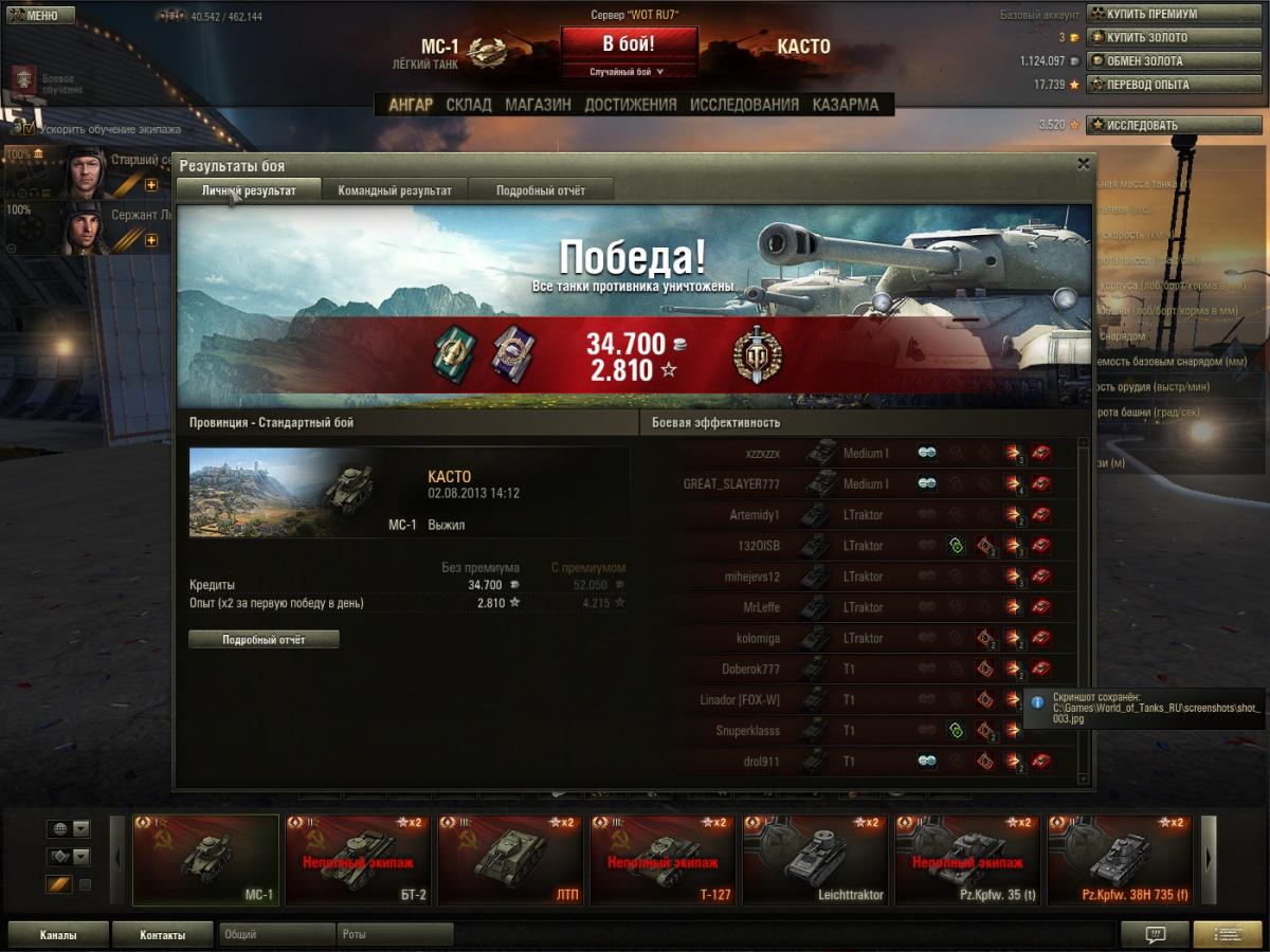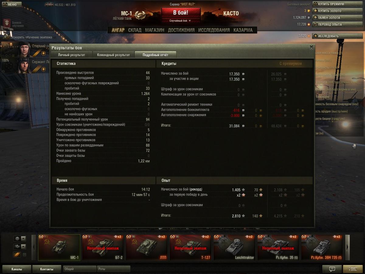Wilde_Goos Опубликовано: 2 августа, 2013 Игроки 2 042 публикации 6 045 боёв Поделиться Опубликовано: 2 августа, 2013 (изменено) 02 Авг 2013 - 17:49 пользователь grig544 сказал:http://wotreplays.ru...rf-grig544-ms-1Прикол, в первый раз такое, сам бой ничего примечательного, но МС-1 в роли волчка я еще не встречал. Начиная с времни 12.00 можно смотреть. Когда с жд на их базу ехал.В трене эту ситуацию повторить не удалось.Кстати доп опыт по итогам боя в результатах не показывается, но начисляется и получается если первое место в победившей команде то 6-ти кратный опыт экипажу добавляется, а тому у кого домик аж два шестикратных.Реплей не скачивал, а вот вопрос возник....чем стреляли? Судя по кол-тву попаданий и суммарному урону...фугасами что ли? 28 пробитий и 260 урона Изменено 2 августа, 2013 пользователем Wilde_Goos Куплю билет в СССР, дорого!!! Ссылка на комментарий Поделиться на других сайтах Другие способы поделиться...