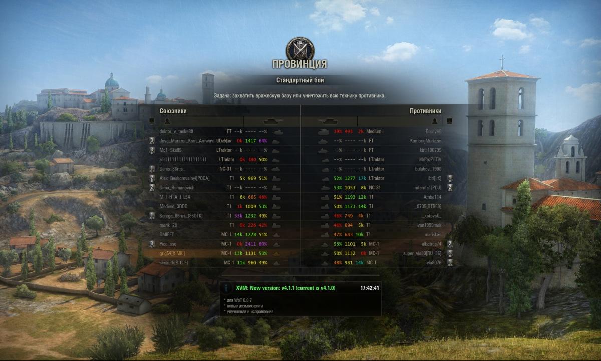 grig544 Опубликовано: 9 сентября, 2013 Игроки 2 362 публикации 15 945 боёв Поделиться Опубликовано: 9 сентября, 2013 (изменено) 09 Сен 2013 - 18:25 пользователь next99999 сказал:Отыграв на Т82 почти 2к боёв первый скрин меня лично не удивляет - но такое всё-же реже встречается, чем во втором скрине. Именно среди 2-3-х чаще встречаю опытных (по сравнению с 1-ми конечно же). Заметил такую закономерность - если хочется поиграть с опытными - играть надо примерно с 1-00 до 6-ти - в это время мало игроков на сервере, и частенько попадаешь с одними и теми же, если сразу заходить в бой (конечно же дожив до его "логического" завершения))На счёт сетки - раз играю на Моське как на ПТ, то сетку совсем не считаю чем то лишним - это может только потом, после прокачки экипажа задумаюсь на счёт её замены на вентиль.Вентиль покупается в первую очередь (но это лично мое мнение) из-за дешевизны. Потом маскировочная сеть и труба. Если есть серебро то сразу. После прокачки маскировки процентов на 70-100 масксеть обычно снимают и меняют на УПН (или на вентиль если сразу были УПН).Это просто мой вариант. Есть и другие. Изменено 9 сентября, 2013 пользователем grig544 Knopka () сказал: Снаряд может вести себя довольно фривольно во время полета, но за пределы круга сведения он все равно не выйдет . В нике одна 4-ка лишняя. Отдохнул на курортах Банландии в общей сложности 25 суток. Ссылка на комментарий Поделиться на других сайтах Другие способы поделиться...