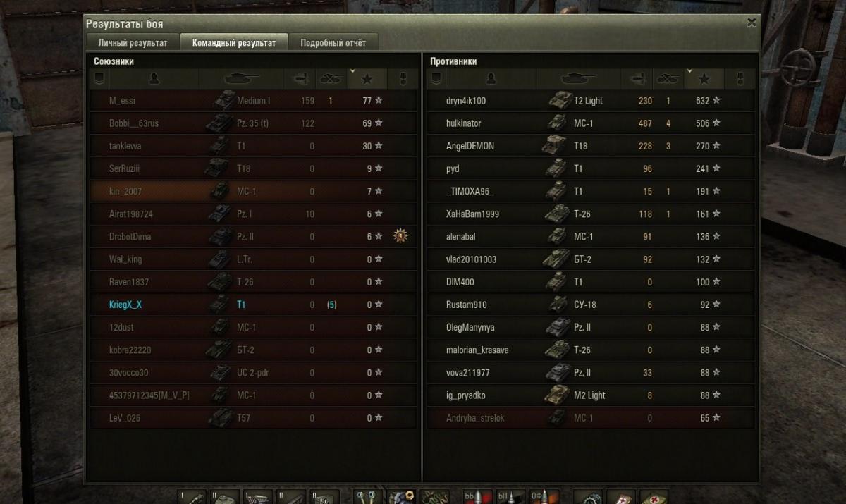 kin_2007 Опубликовано: 14 сентября, 2013 Игроки 2 193 публикации 174 359 боёв Поделиться Опубликовано: 14 сентября, 2013 (изменено) Паренек, видать, прочитал про откат наказания за тимкилл и повеселился от души. Наразбирал наших вторых лвл как печенек. Наша команда прошлепала бой за 2 минуты - мой антирекорд Изменено 14 сентября, 2013 пользователем kin_2007 Экипаж МС купит домик в Провинции или участок в Малиновке, желательно в районе водоема, дорого, до неприличия дорого. Ссылка на комментарий Поделиться на других сайтах Другие способы поделиться...