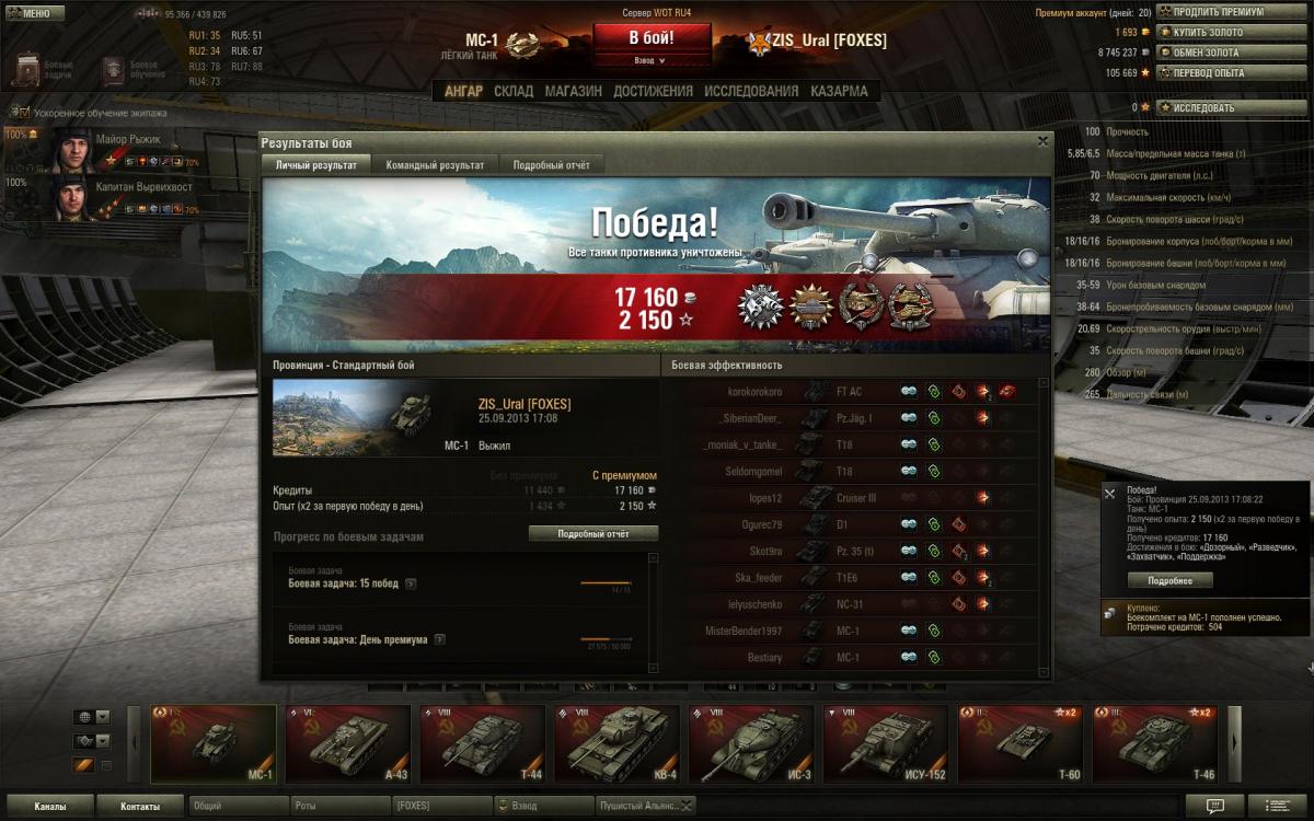 Сегодня получился бой с хорошим набором медалек, спасибо совзводным.