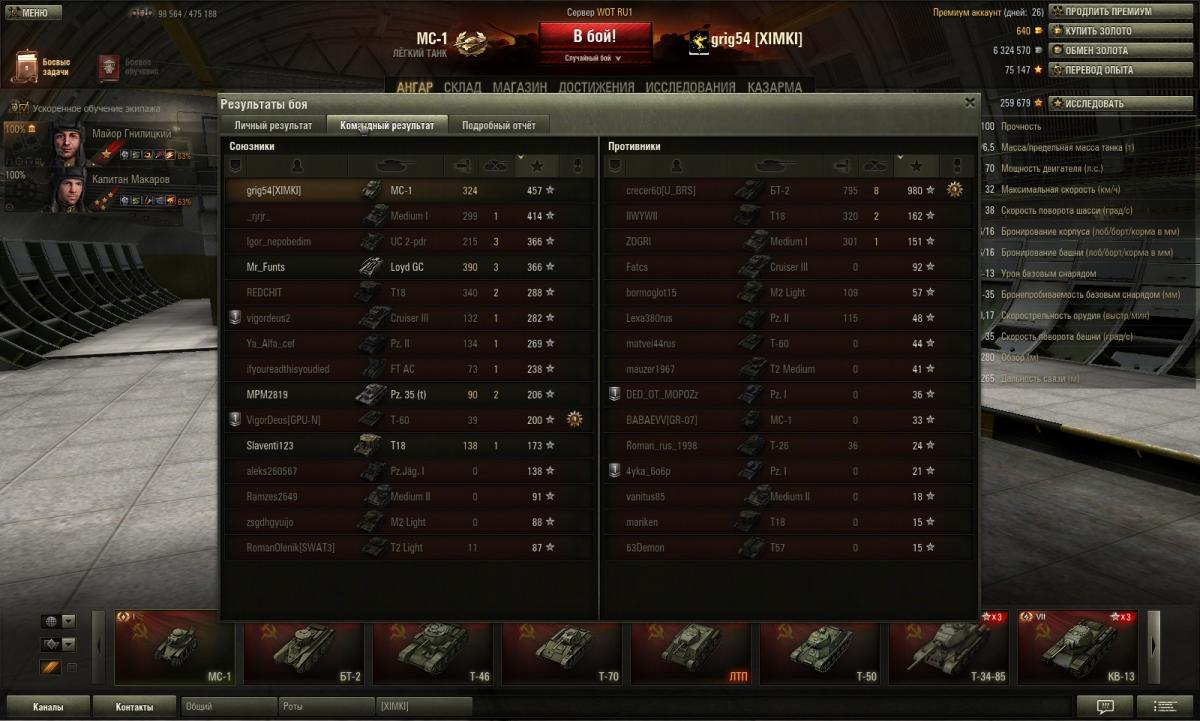 ZIS_Ural Опубликовано: 5 октября, 2013 Игроки 455 публикаций 21 742 боя Поделиться Опубликовано: 5 октября, 2013 04 Окт 2013 - 22:19 пользователь XuM4AHKA сказал:Если ты считаешь, кто страдал - не страдал, то, как я поняла, смотришь на урон свыше 100.Не боись, и тут всё по-честному: у нас 6 НЕ страдало, у врагов - 5.И уроном я не обделена, хотя и враг, и некоторые наши его тоже нехило наносили.Но в твою хитрую формулу этот честный итог никак не укладывется.Никаких хитрых формул нет, каждый игрок должен сделать определенные действия для победы - наносить урон противнику и светить. Я смотрю не конкретно на урон выше 100, а урон, пропорциональный количеству хп. Если у МС 100 хп, чтобы нивелировать свою гибель он должен нанести минимум 100 урона, трактор - 130 и т.д., либо компенсировать урон светом. Судя по итоговой таблице, в вашей команде 7 игроков как минимум отбили свое хп плюс сколько-то насветили, в команде противника таких четверо (Медиум с фрагом и 109 урона по чужому засвету не в счет). Четверым тащить команду объективно сложнее, чем семерым.Критериев по типу "честности", "ВБРности" и прочих "колдуй баба, колдуй дед, колдуй медведь с аватарки Мальчика" у меня как раз нет. Победит та команда, которая даст качественный засвет, нанесет максимально возможный урон по этому засвету и получит минимальный урон в ответ - это применимо и к каждому игроку. Поэтому бой на 99% делают его участники, и только на 1% - "рикошет" по ваншотному противнику. А если игрАки полбоя щелкают мандибулами - это их проблемы, они честно проиграют, т.к. их боевое участие заведомо меньше. С медалями поздравляю, набор хороший и выпадает действительно в том случае, когда бой делает один игрок. :blinky: 2 Ссылка на комментарий