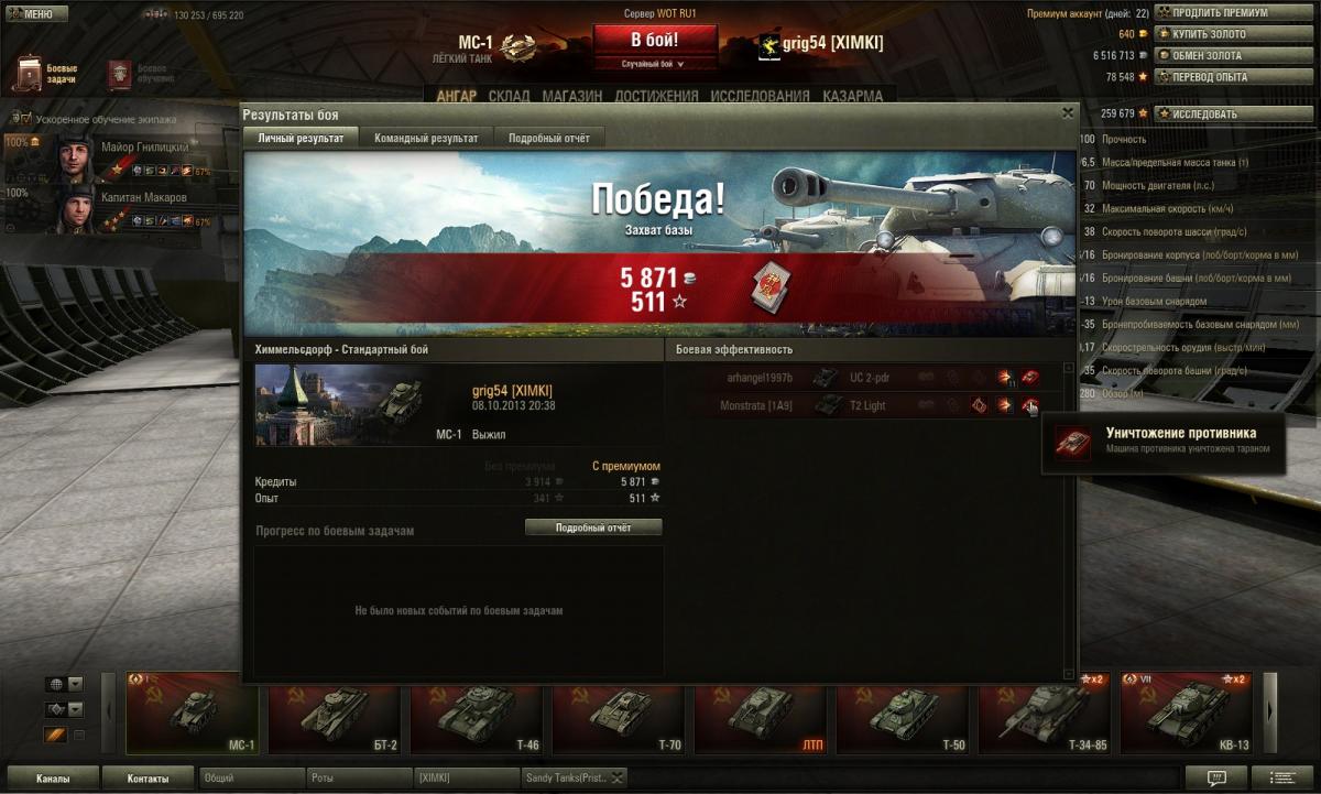 grig544 Опубликовано: 8 октября, 2013 Игроки 2 362 публикации 16 115 боёв Поделиться Опубликовано: 8 октября, 2013 (изменено) 08 Окт 2013 - 20:35 пользователь JI0T0C сказал:4 боя по 5 фрагов. Ну почему бы для таких криворуких не ввести Медаль какую-нибудь Утешительную))))Полувоин? Недовоин? Аника-воин?Первый раз уничтожил танк 2-го уровня целенаправленно тараном. Правда несся он , но я специально ему наперерез выехал.Пулемет разрядил, но видел что у него мизер хп.Еще и сам жив остался. http://cdn-frm-eu.wargaming.net/wot/ru/uploads/monthly_10_2013/post-13494453-0-85125100-1381254345_thumb.jpg08 Окт 2013 - 20:14 пользователь _nCuXuATP_ сказал:А насчёт карт я считаю, что четырёх вполне достаточно...я хоть отдыхаю от этих дерьмокарт, которых навводили....и+ это всё рассчитано для новичков в игре, - они же должны привыкнуть, не то они запутаются в изобилии разных ландшафтов... всё грамотно сделано..- второй левел уже 8мь карт... по возрастанию...До третьего уровня можно дойти за 50 боев и ты уже на всех картах играешь. А 50 боев это всё равно что ничего. Изменено 8 октября, 2013 пользователем grig544 Knopka () сказал: Снаряд может вести себя довольно фривольно во время полета, но за пределы круга сведения он все равно не выйдет . В нике одна 4-ка лишняя. Отдохнул на курортах Банландии в общей сложности 25 суток. Ссылка на комментарий