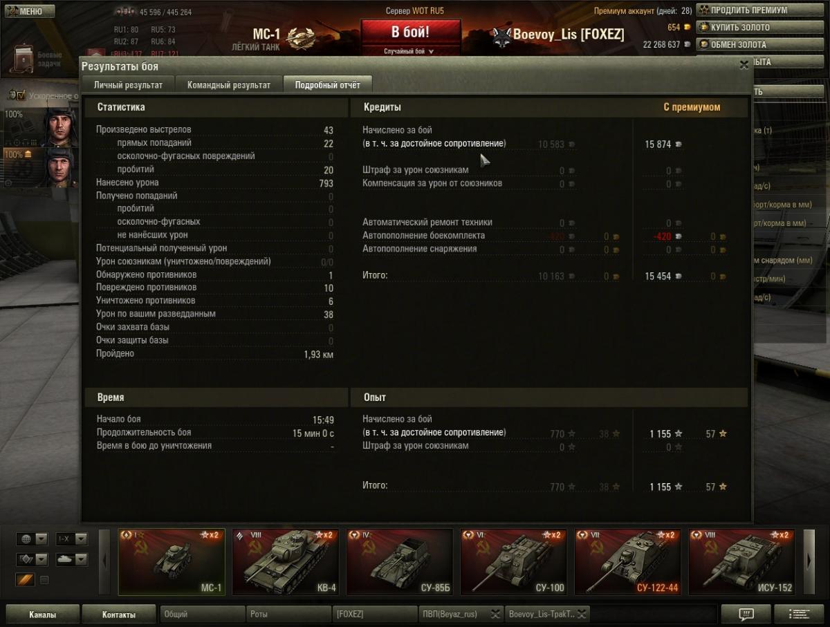 222grey Опубликовано: 8 октября, 2013 Игроки 427 публикаций 25 365 боёв Поделиться Опубликовано: 8 октября, 2013 08 Окт 2013 - 15:40 пользователь Zongi сказал:Наверно, лютые твинки с безупречным расчётом - начавшие со 100% экипажем и полным обвесом, играющие строго в определённое время на определённых серверах. Фиг их знает, но я так прикинул, даже если бы я начал со 100% и обвесом и стрелял бы одними подкалиберными, то и тогда на 425-450 среднего дамага я бы ну никак не вышел. Помню в одной команде с таким папкой в провинцию попал, так он с полутысячей боев на МС фраги набивал чуть ли ни быстрее чем я сводился с приводами, вентилем, ББ и плавным поворотом башни. Превратите МС-1 обратно из *** в танк! Верните звуки до 9.14!!! Ссылка на комментарий