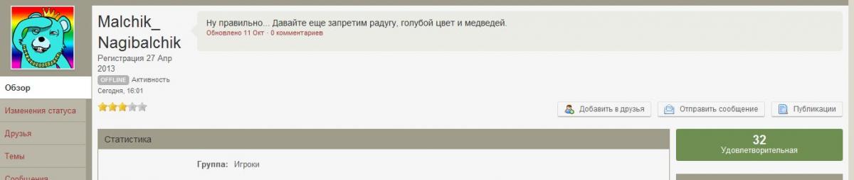 KPOT2338 Опубликовано: 13 октября, 2013 Игроки 21 616 публикаций 38 512 боёв Поделиться Опубликовано: 13 октября, 2013 http://wotreplays.ru/site/1365966#teamС такими лагами - первый по опыту. Химчанка, я тебе хоть раз на тракторе попадался?А то стоит сесть на МС - и сразу встреча).Извини, сразу тебя не заметил - смотрю только МС и Трактора. Что не делается, всё к лучшему! (с) Cos 700=0.3420, Cos 850=0.0872Кто нибудь привяжите его руки к подлокотникам, и клавиатуру у него заберите. И вообще любое устройство с которого можно печатать. (с) kojot7Введите уже артприцел для всей техники Ссылка на комментарий